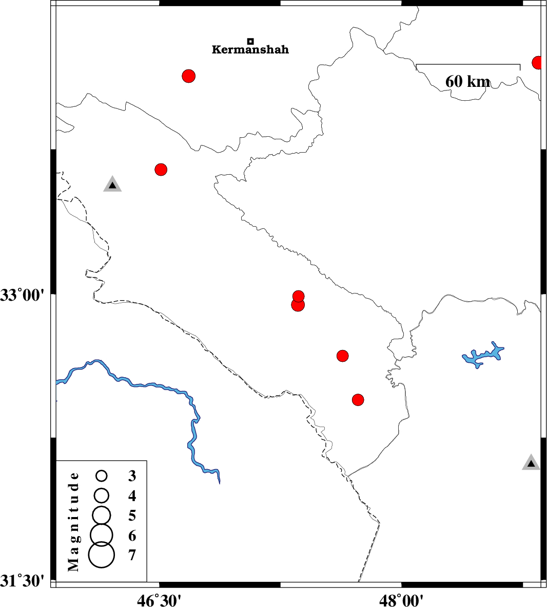 | 2024/05/19 | 00:35:21.1 | 04:05:21.1 | 34.127 | 46.682 | 10 | ML:3.6 | Kermanshah Province, 8 km of Eslam Abad-E-Gharb | ||