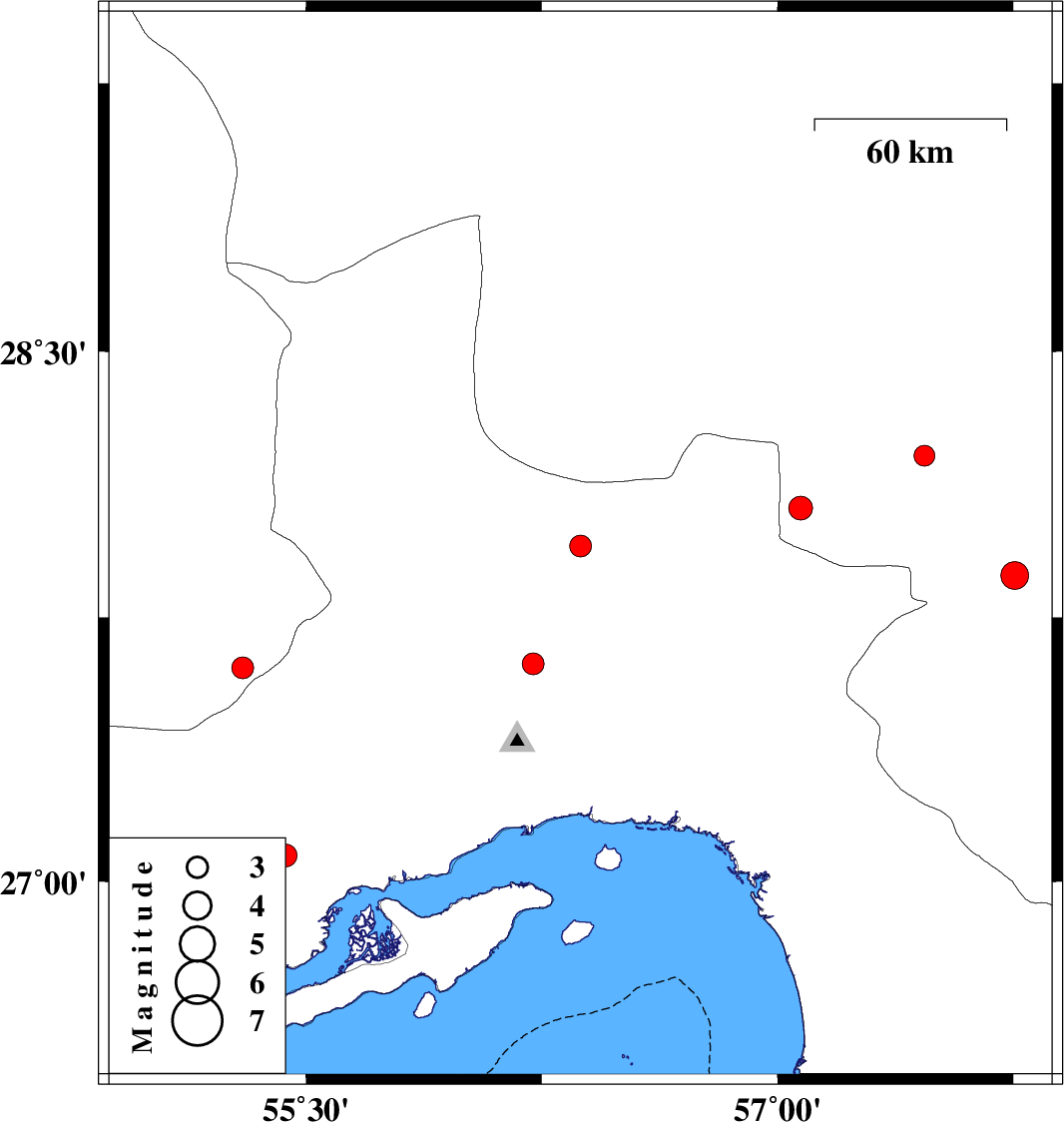 2024/05/26 05:13:12.7 08:43:12.7 26.74755.3412 ML:3.3 Persian Gulf, 55 km North-East of Bandar-e lengeh