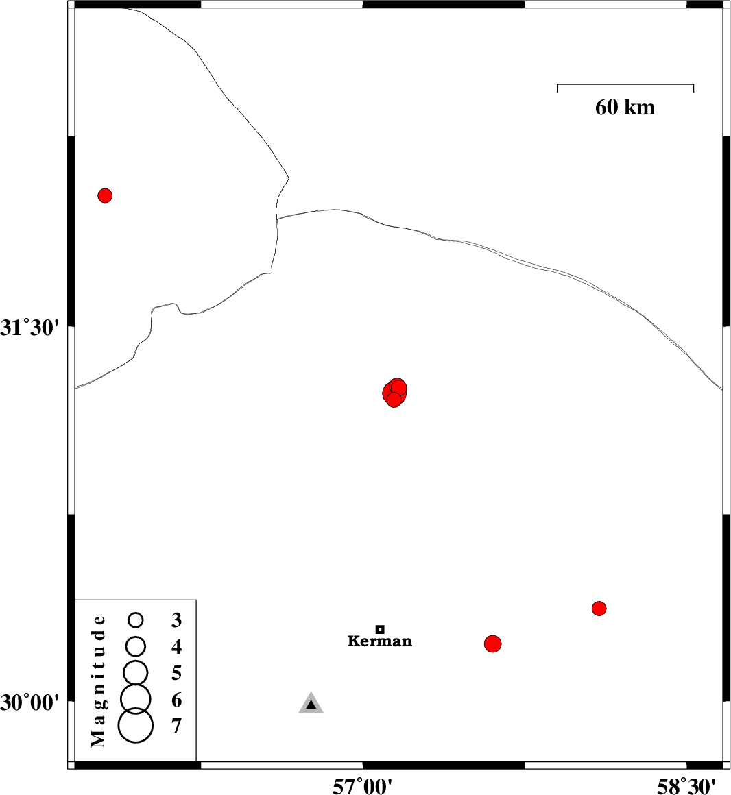 | 2024/05/15 | 07:26:09.5 | 10:56:09.5 | 30.372 | 58.094 | 12 | ML:3 | Kerman Province, 98 km -East of Kerman |