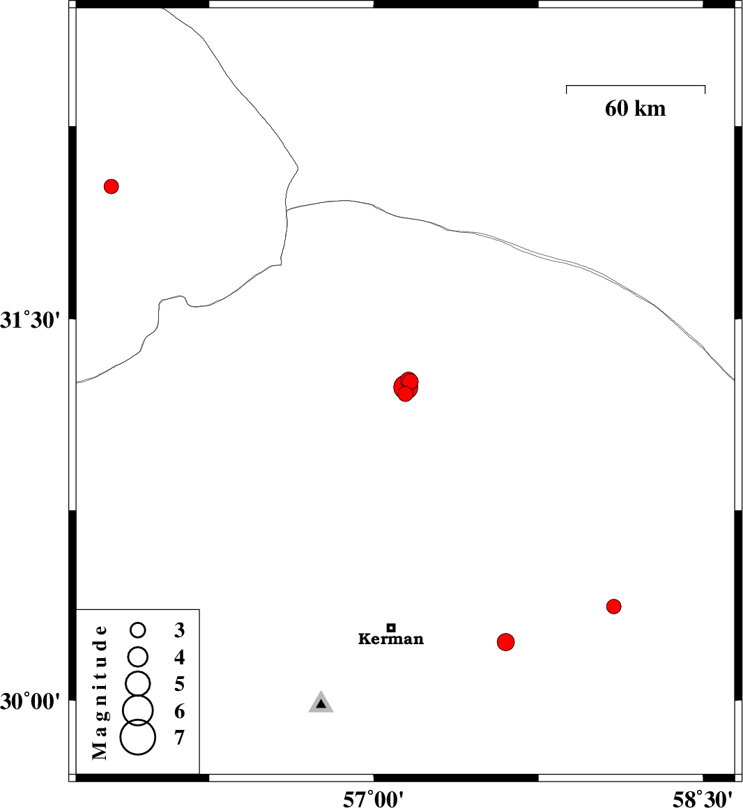 | 2024/05/15 | 07:26:09.5 | 10:56:09.5 | 30.372 | 58.094 | 12 | ML:3 | Kerman Province, 98 km -East of Kerman |