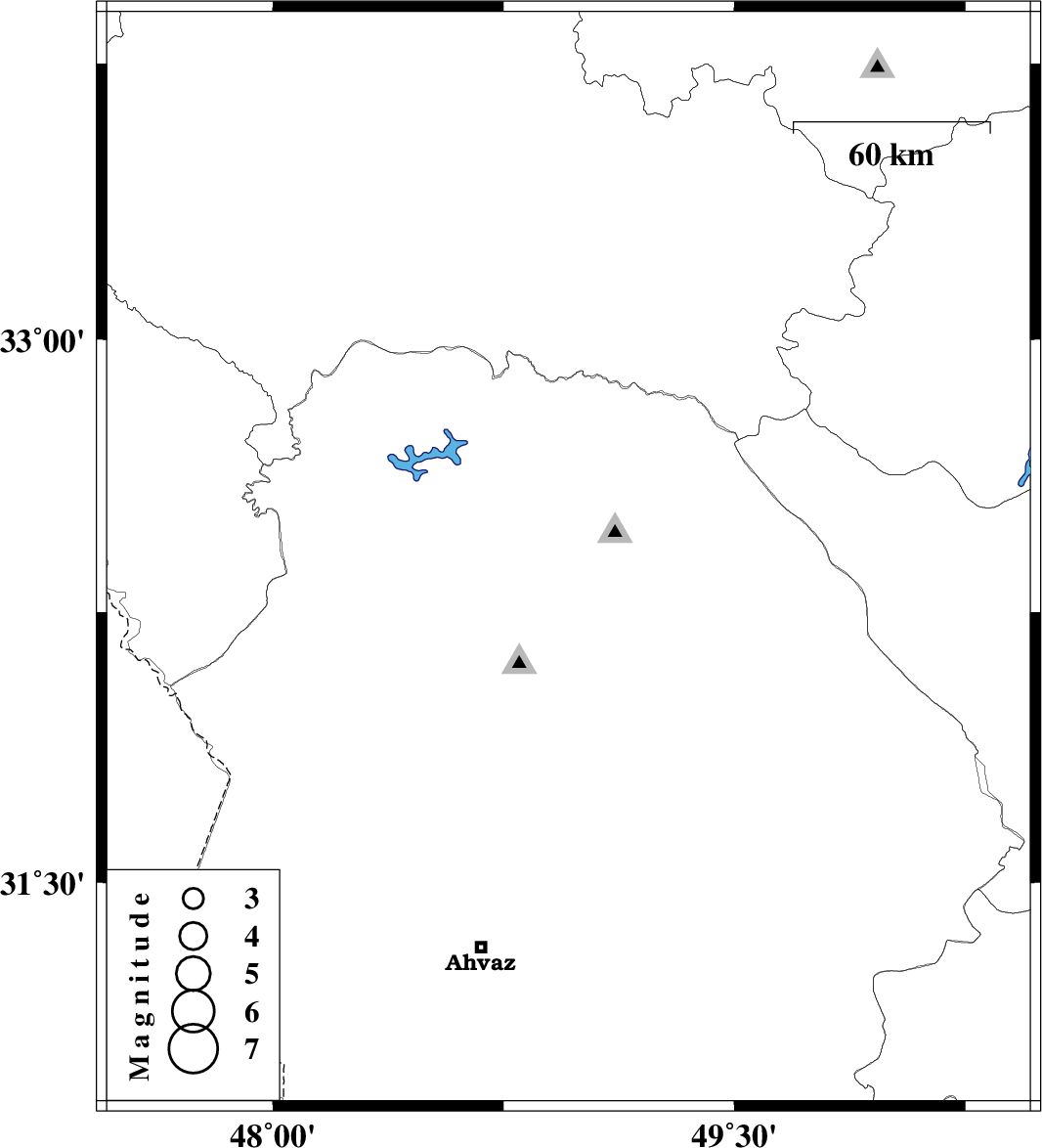 | 2024/06/04 | 23:35:33.2 | 03:05:33.2 | 32.392 | 48.961 | 40 | ML:3.3 | Khoozestan Province, 14 km -West of Lali |