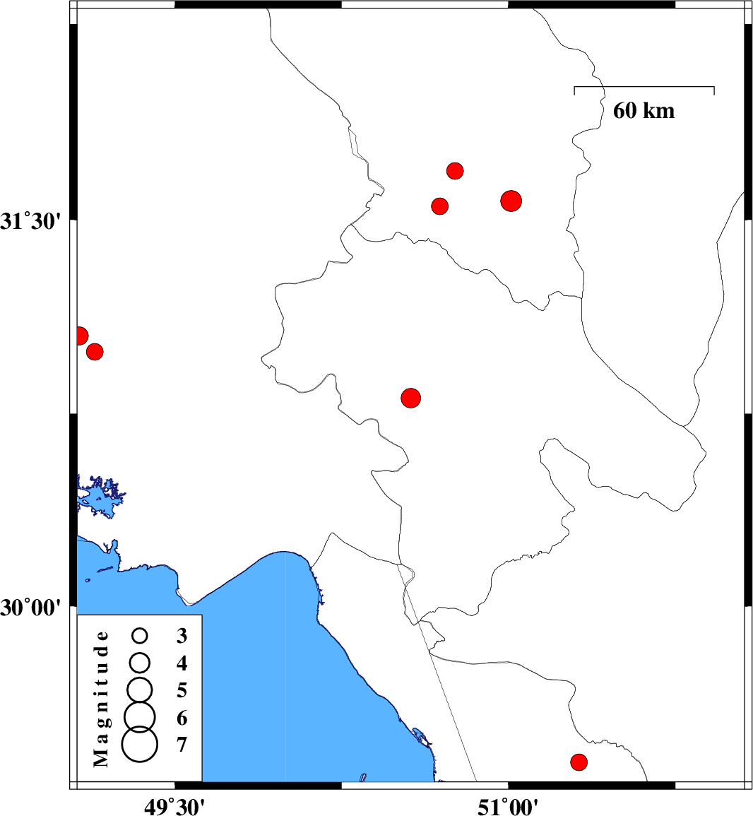 | 2024/05/10 | 06:53:48.3 | 10:23:48.3 | 31.051 | 49.07 | 28 | ML:3.7 | Khoozestan Province, 57 km North-West of Bandar-e mahshahr | ||