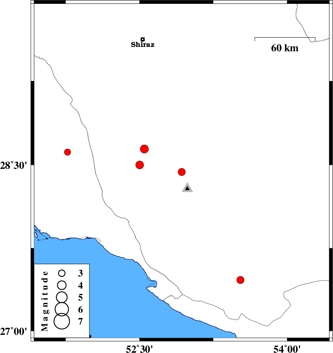 | 2024/06/06 | 01:35:02.9 | 05:05:02.9 | 28.437 | 52.929 | 12 | ML:3.4 | Fars Province, 11 km -West of Qir va Karzin | ||