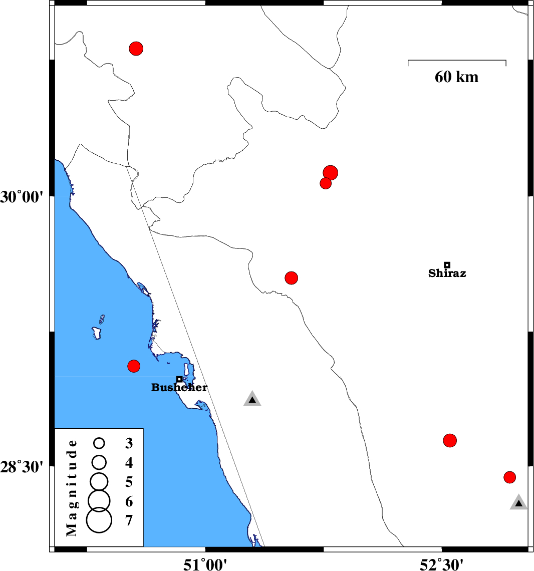 | 2024/06/07 | 02:12:16.2 | 05:42:16.2 | 29.058 | 50.547 | 12 | ML:3.5 | Persian Gulf, 29 km -West of Busheher | ||
