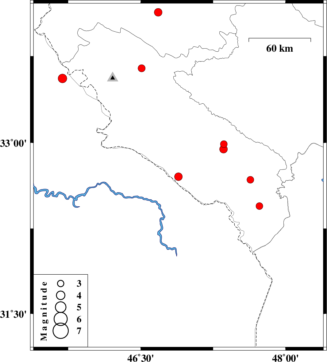 | 2024/05/29 | 02:46:08.3 | 06:16:08.3 | 32.988 | 47.361 | 12 | ML:3.2 | Ilam Province, 12 km -West of Abdanan | ||
