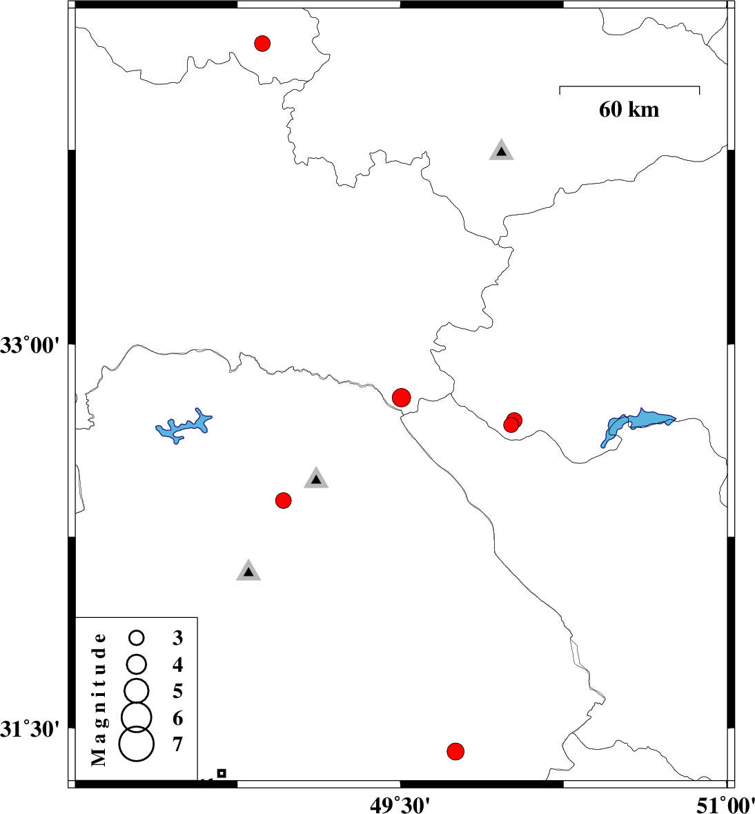 | 2024/06/04 | 23:35:33.2 | 03:05:33.2 | 32.392 | 48.961 | 40 | ML:3.3 | Khoozestan Province, 14 km -West of Lali |