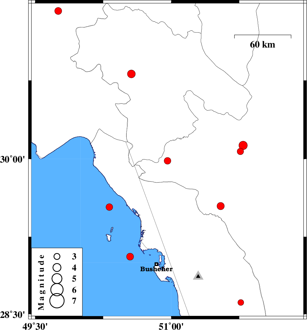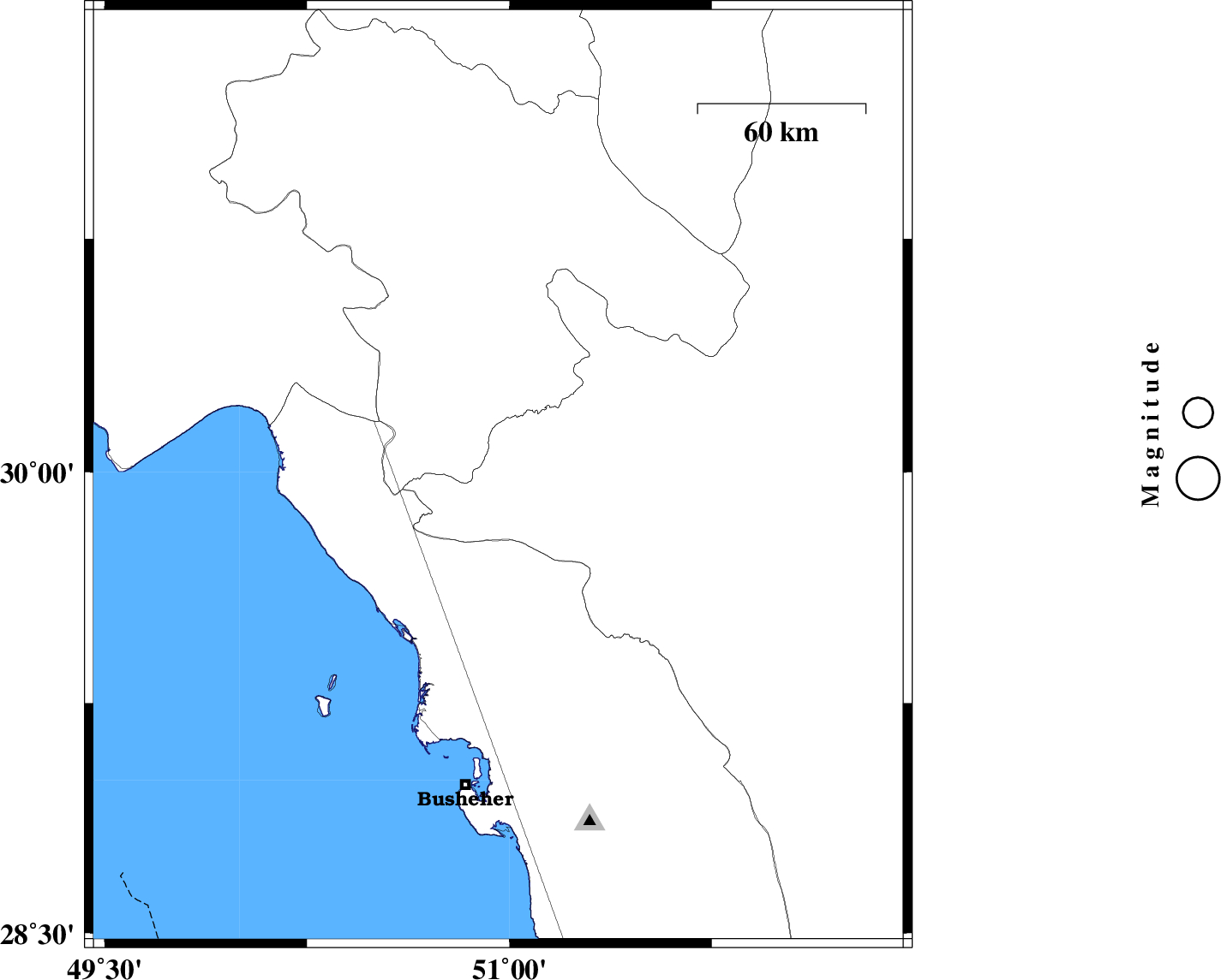 | 2024/06/07 | 02:12:16.2 | 05:42:16.2 | 29.058 | 50.547 | 12 | ML:3.5 | Persian Gulf, 29 km -West of Busheher | ||