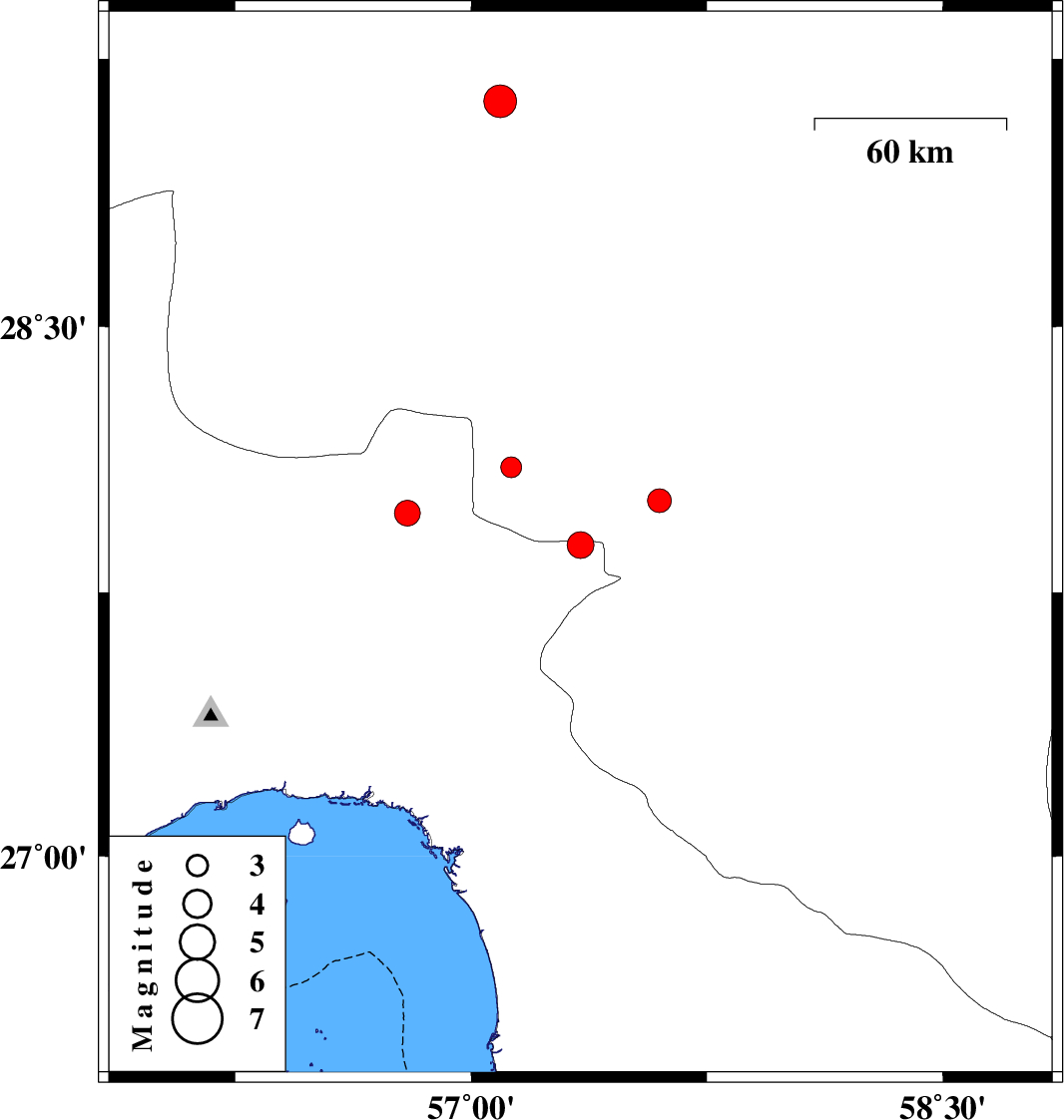 | 2024/07/07 | 04:07:22.0 | 07:37:22.0 | 28.009 | 57.599 | 12 | ML:3.4 | Kerman Province, 11 km of Kahnuj |