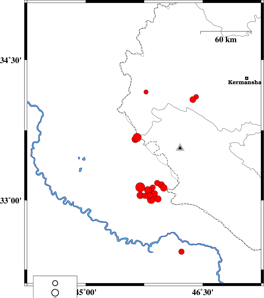 2019/04/01 10:21:59.1 14:51:59.1 33.60345.6212 ML:3.9 Iraq, 66 km South-West of Gilan-E-Gharb