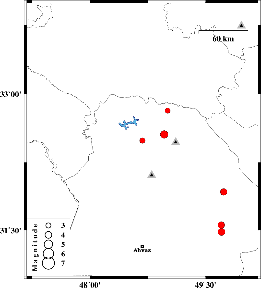 | 2024/07/22 | 04:38:43.3 | 08:08:43.3 | 32.489 | 48.68 | 12 | ML:3.2 | Khoozestan Province, 31 km -East of Andimeshk | ||