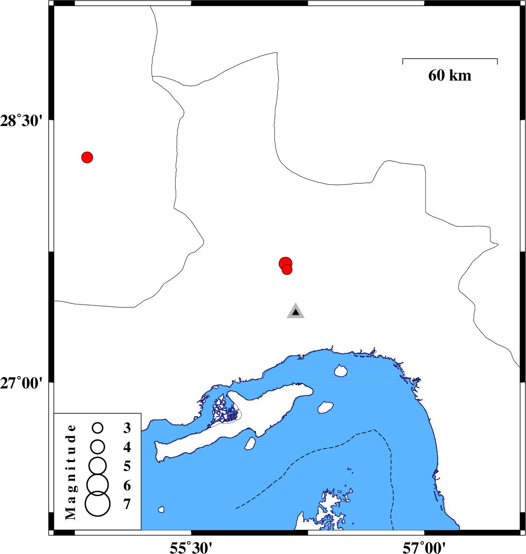 | 2024/08/09 | 06:39:04.5 | 10:09:04.5 | 27.647 | 56.115 | 12 | ML:3 | Hormozgan Province, 54 km North-West of Bandar-e abbas | ||