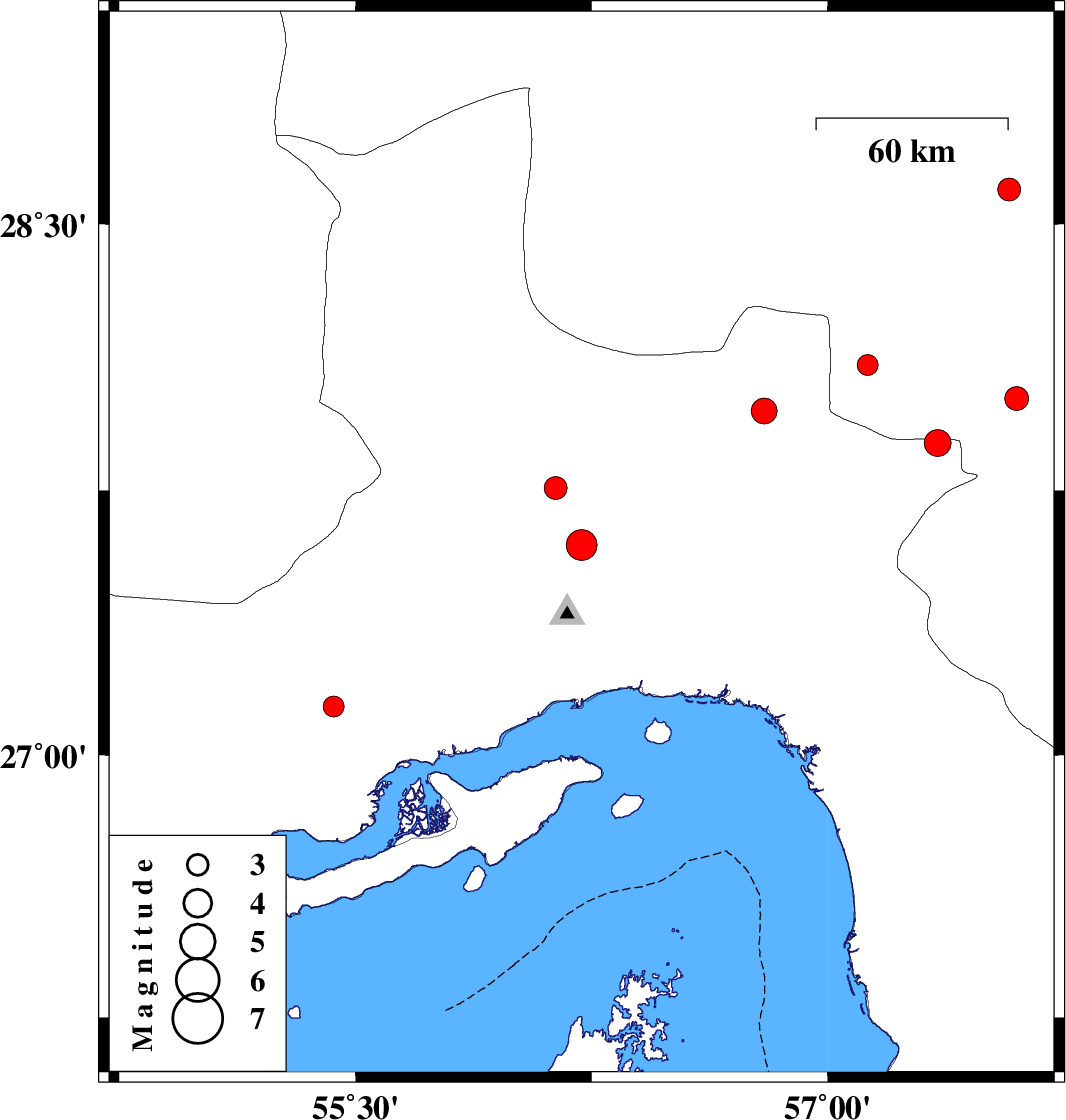 | 2024/07/25 | 14:04:30.6 | 17:34:30.6 | 27.596 | 56.218 | 18 | ML:4.4 | Hormozgan Province, 46 km North of Bandar-e abbas | ||