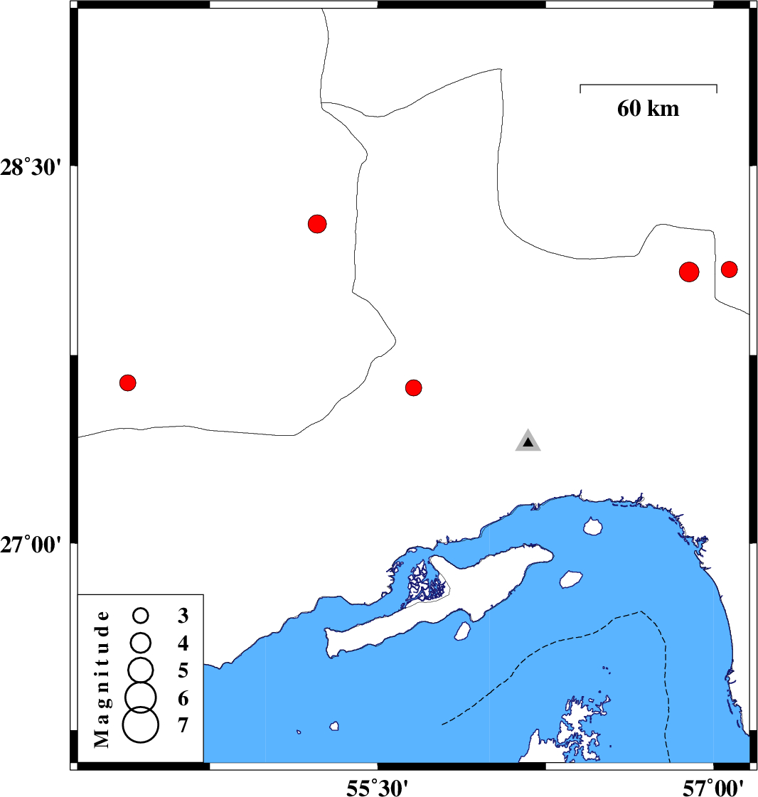 | 2020/08/21 | 14:57:10.8 | 19:27:10.8 | 28.09 | 57.07 | 10 | ML:3.3 | Kerman Province, 63 km North-West of Kahnuj |