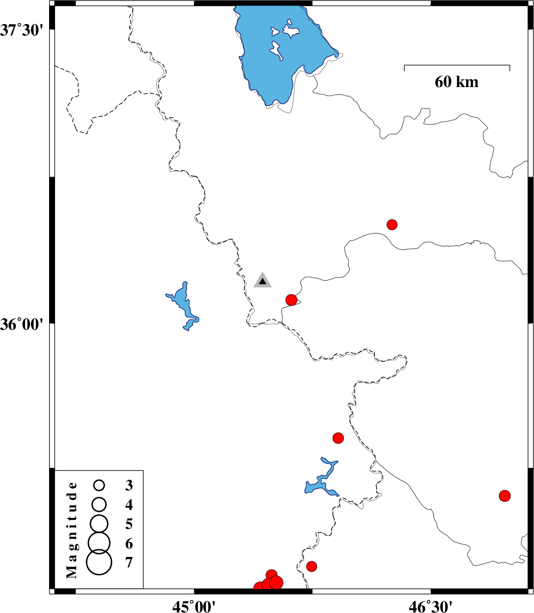 | 2020/08/01 | 08:37:59.9 | 13:07:59.9 | 34.62 | 45.42 | 16 | ML:3.8 | Iraq, 19 km North-West of Qasr-E-Shirin |