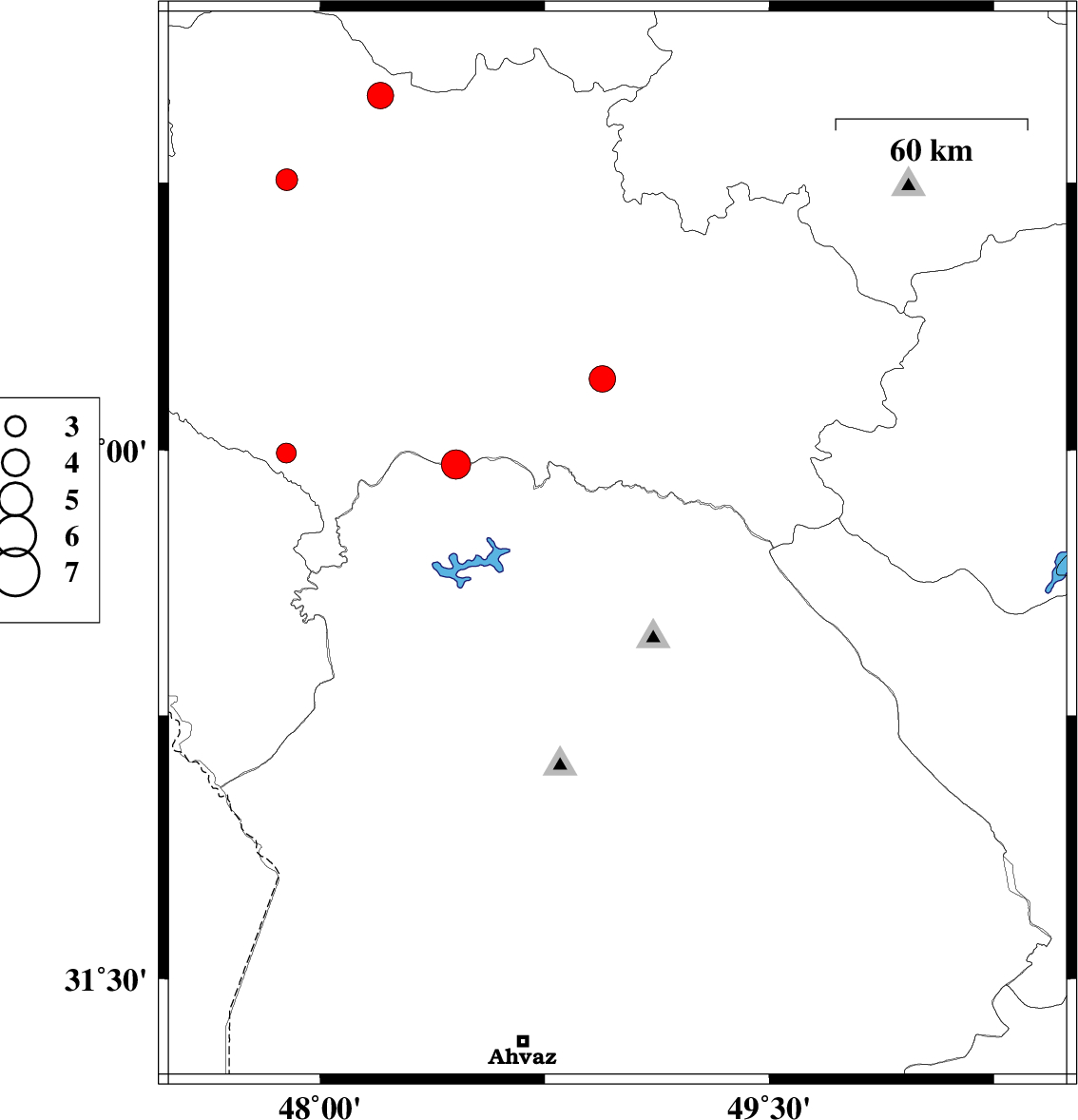 | 2024/08/14 | 08:36:54.6 | 12:06:54.6 | 31.712 | 48.679 | 12 | ML:3 | Khoozestan Province, 43 km North of Ahvaz | ||
