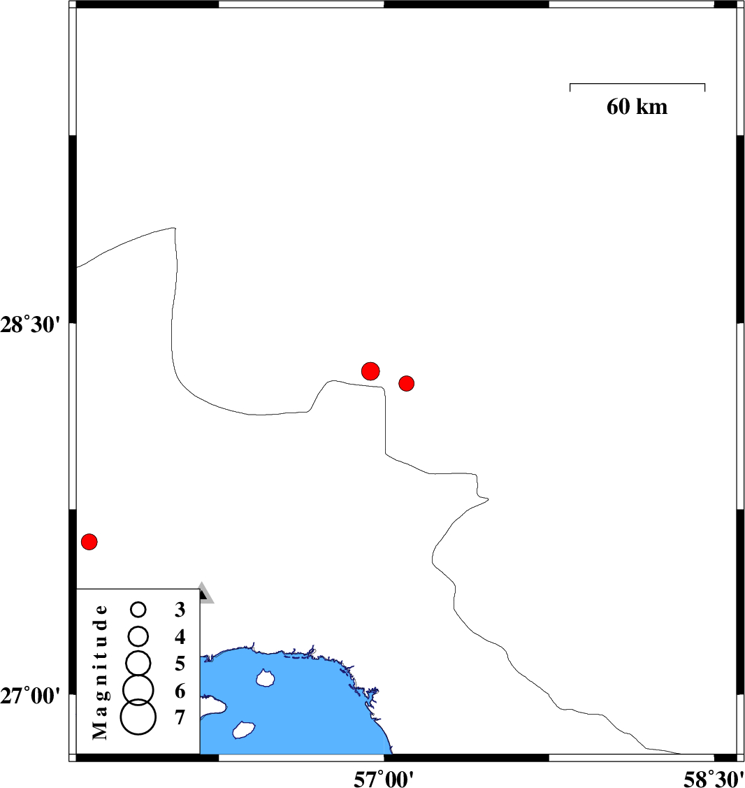 | 2020/08/27 | 21:42:28.4 | 02:12:28.4 | 27.619 | 55.66 | 9 | ML:3.3 | Hormozgan Province, 80 km South-West of Hajiabad |