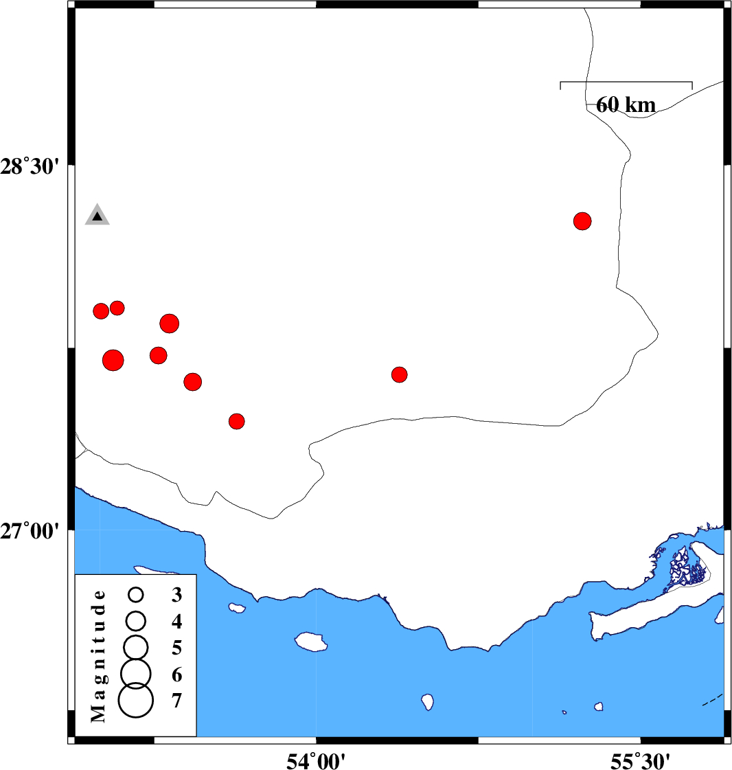 | 2020/07/28 | 23:10:22.8 | 03:40:22.8 | 27.61 | 53.429 | 15 | ML:3.7 | Fars Province, 40 km North-East of Lamerd |