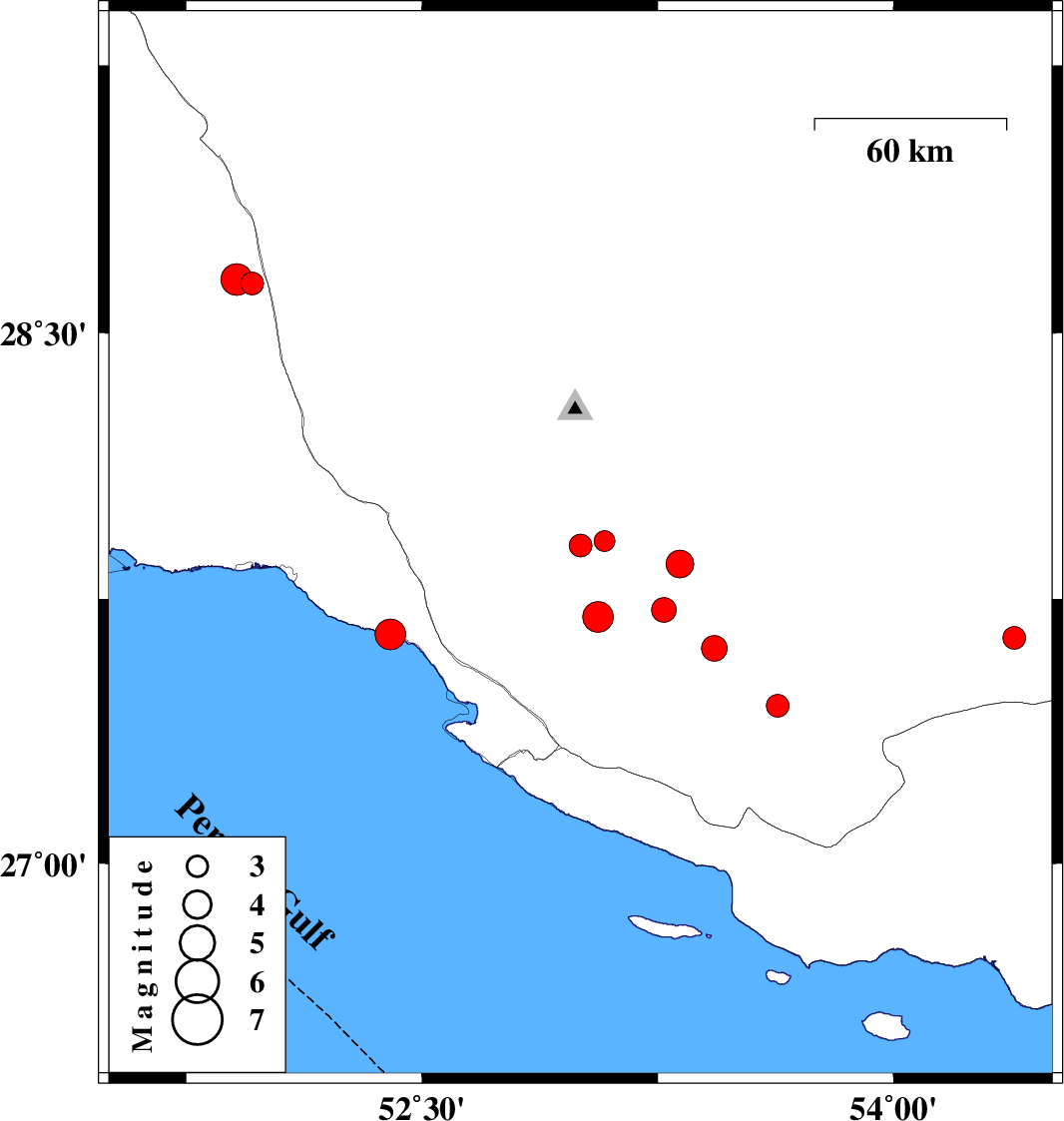 2020/08/25 04:41:20.7 09:11:20.7 27.44853.63212 ML:3.2 Fars Province, 48 km North-East of Lamerd