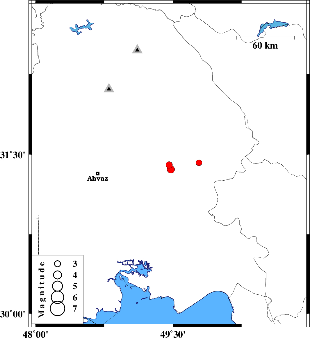 | 2024/08/26 | 01:37:12.1 | 05:07:12.1 | 31.402 | 49.459 | 12 | ML:3.3 | Khoozestan Province, 20 km North-West of Ramhormoz | ||