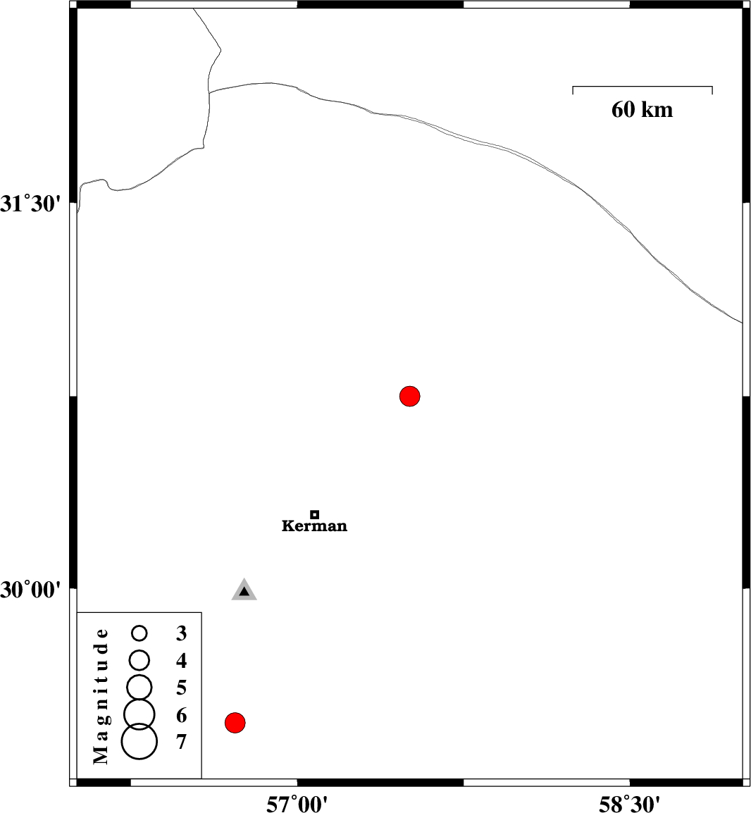 | 2020/08/05 | 18:55:03.8 | 23:25:03.8 | 30.749 | 57.507 | 12 | ML:4.1 | Kerman Province, 66 km North-East of Kerman | ||