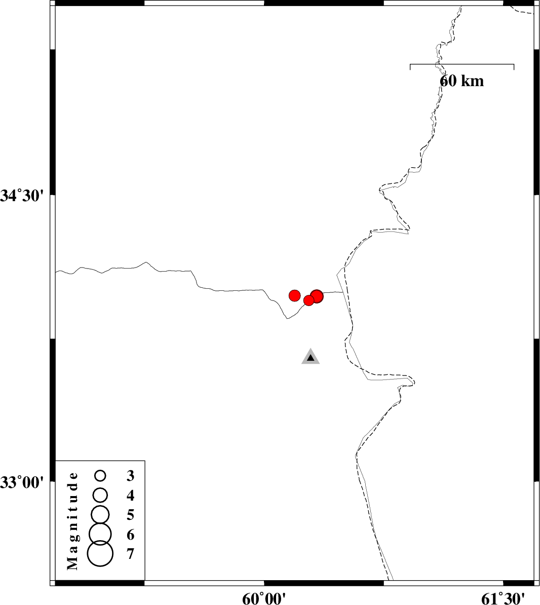 2020/08/02 | 05:42:33.3 | 10:12:33.3 | 33.97 | 60.33 | 10 | ML:3.4 | , 69 km South-East of Khaf | ||