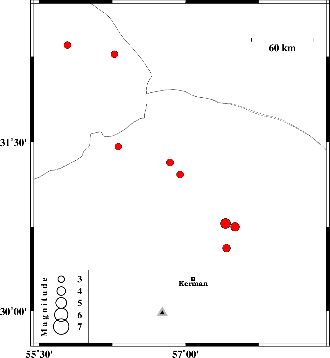 | 2020/07/17 | 10:57:33.9 | 15:27:33.9 | 30.56 | 57.42 | 10 | ML:3.6 | Kerman Province, 45 km North-East of Kerman |