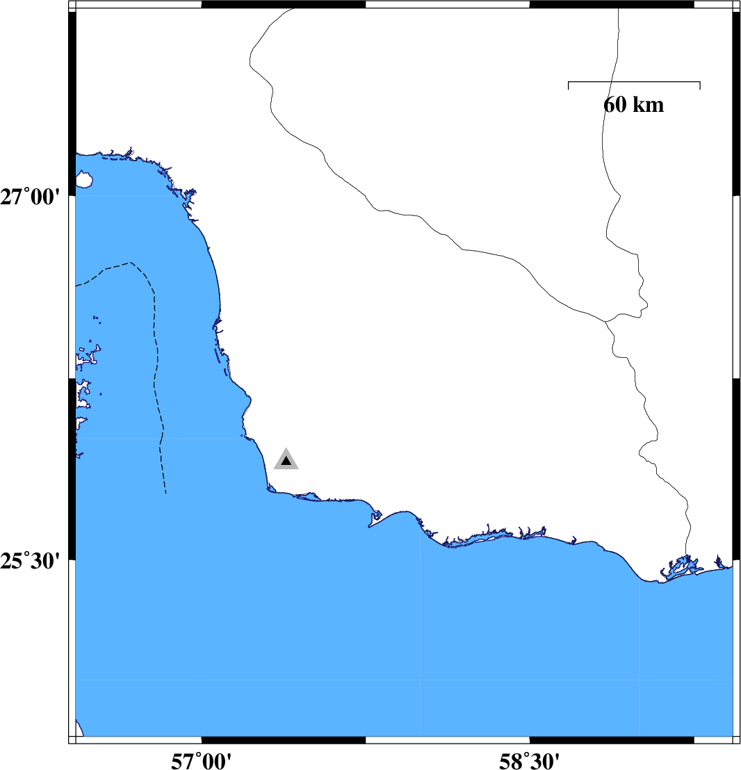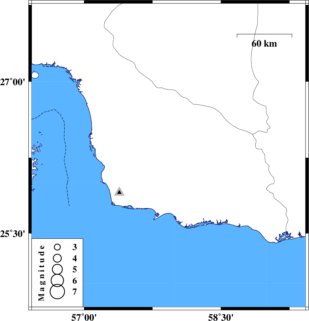 | 2024/09/16 | 23:58:41.8 | 03:28:41.8 | 26.266 | 57.926 | 17 | ML:3.5 | Hormozgan Province, 72 km North-East of Jask |