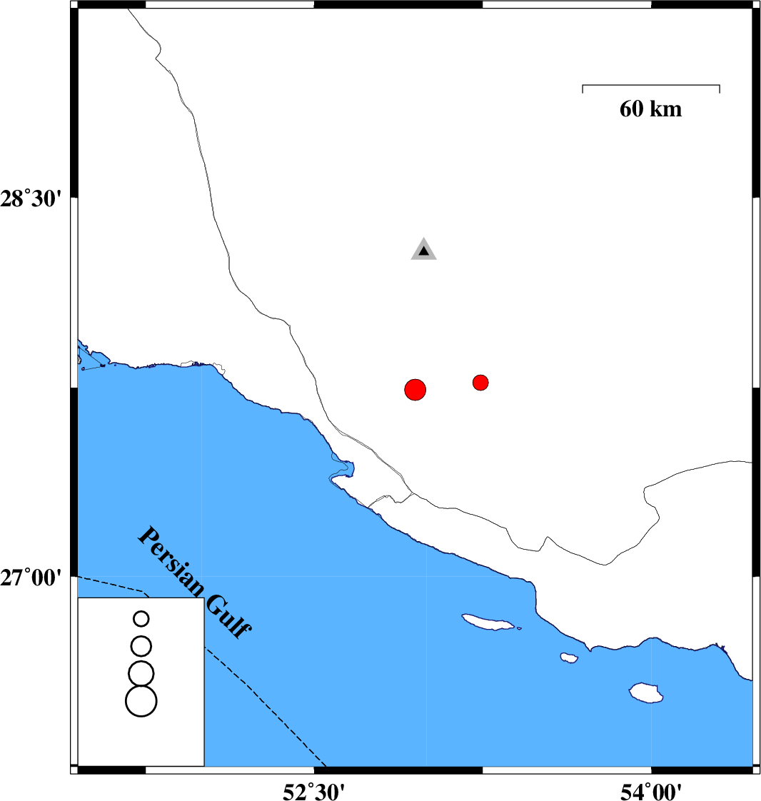 | 2020/07/02 | 00:29:16.7 | 04:59:16.7 | 27.741 | 52.949 | 12 | ML:4.2 | Fars Province, 22 km North of Mehr | ||