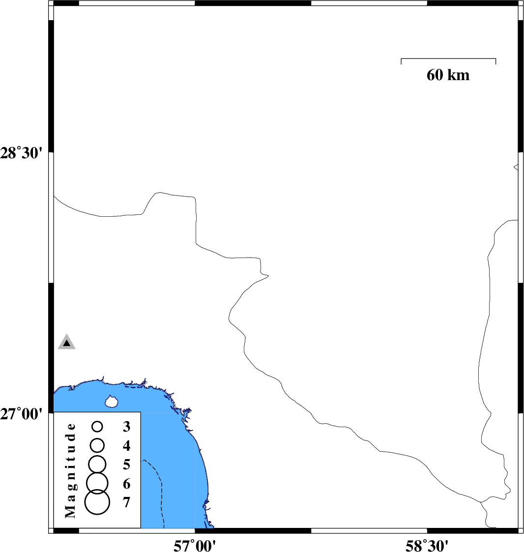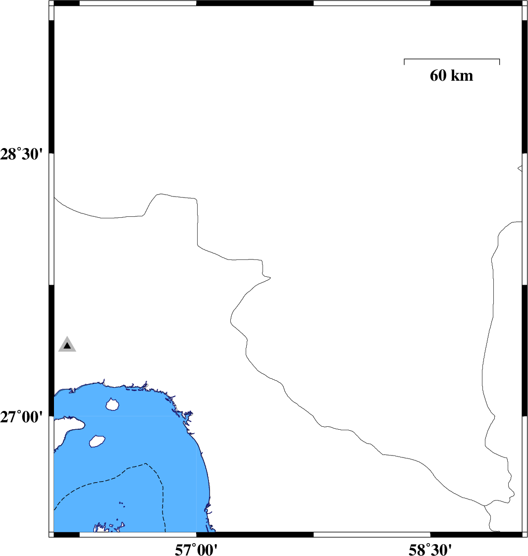 | 2024/10/19 | 07:14:29.5 | 10:44:29.5 | 27.832 | 57.587 | 10 | ML:3.8 | Kerman Province, 17 km South-West of Kahnuj |