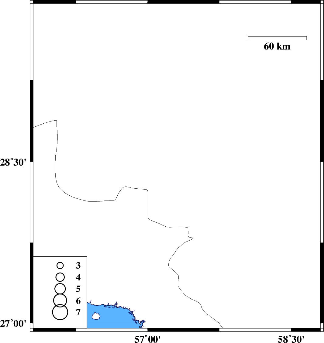 | 2024/11/02 | 07:40:52.9 | 11:10:52.9 | 28.451 | 57.305 | 12 | ML:3.1 | Kerman Province, 49 km South-West of Jiroft |