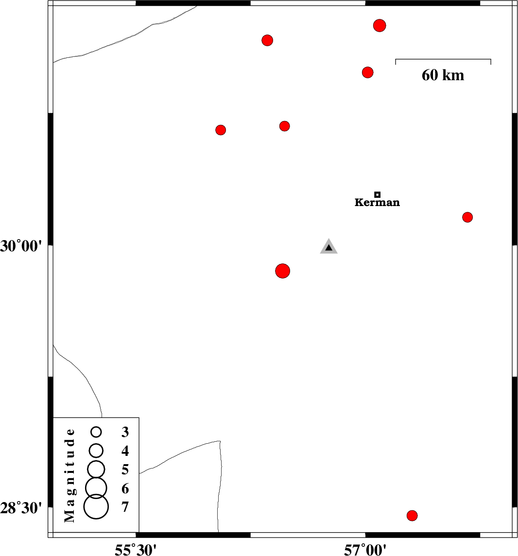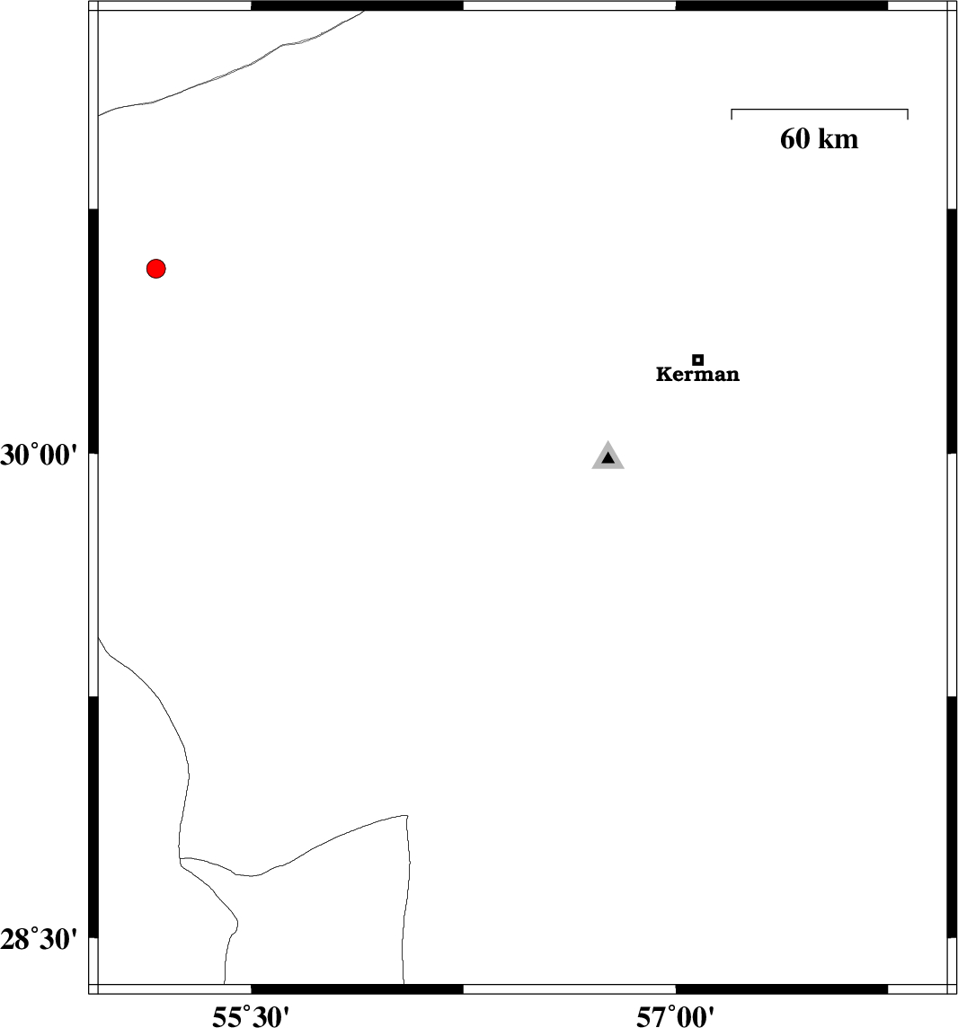 | 2024/10/04 | 18:26:21.3 | 21:56:21.3 | 30.654 | 56.055 | 12 | ML:3 | Kerman Province, 28 km North of Rafsanjan |