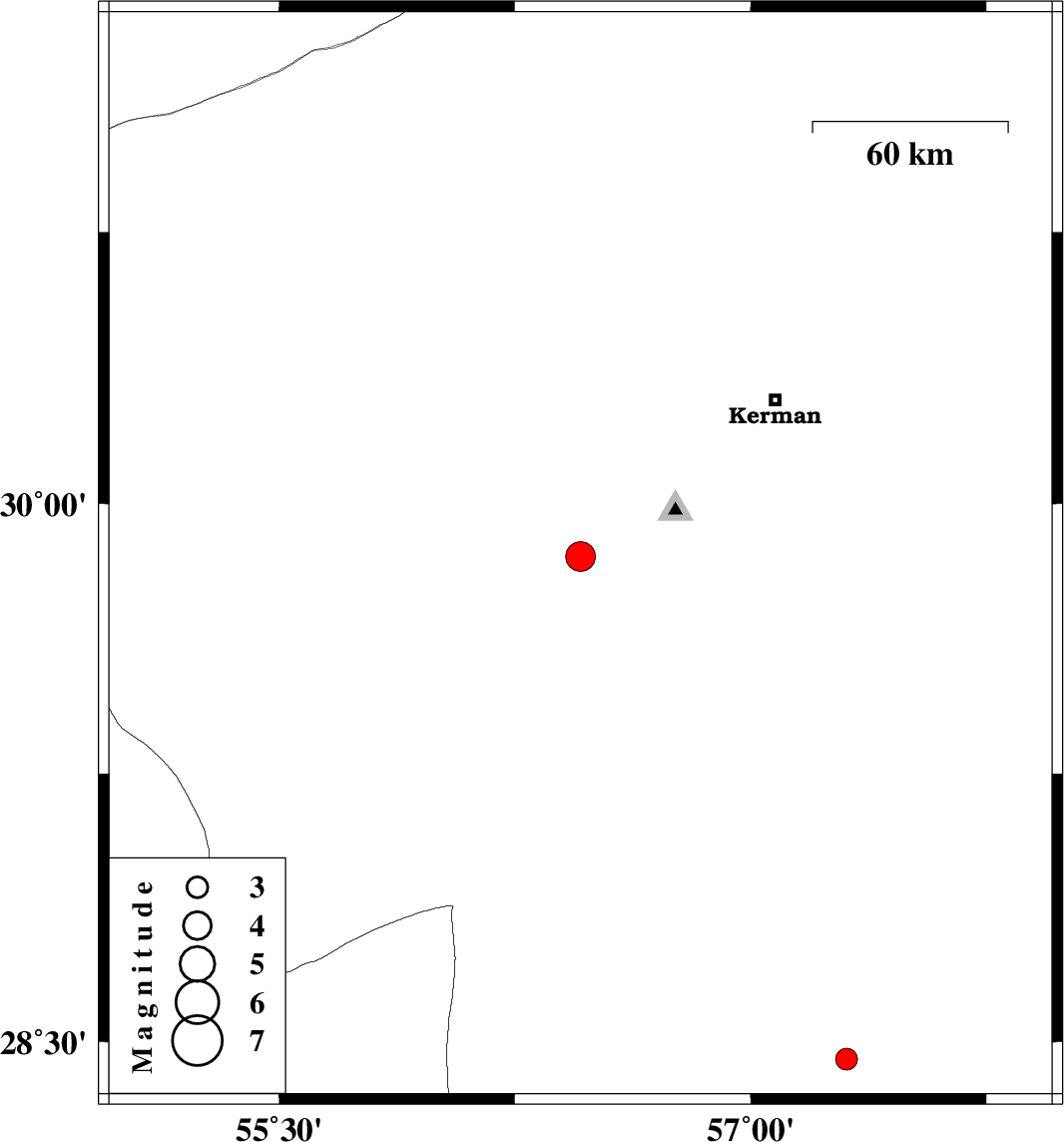 | 2024/11/02 | 07:40:52.9 | 11:10:52.9 | 28.451 | 57.305 | 12 | ML:3.1 | Kerman Province, 49 km South-West of Jiroft |