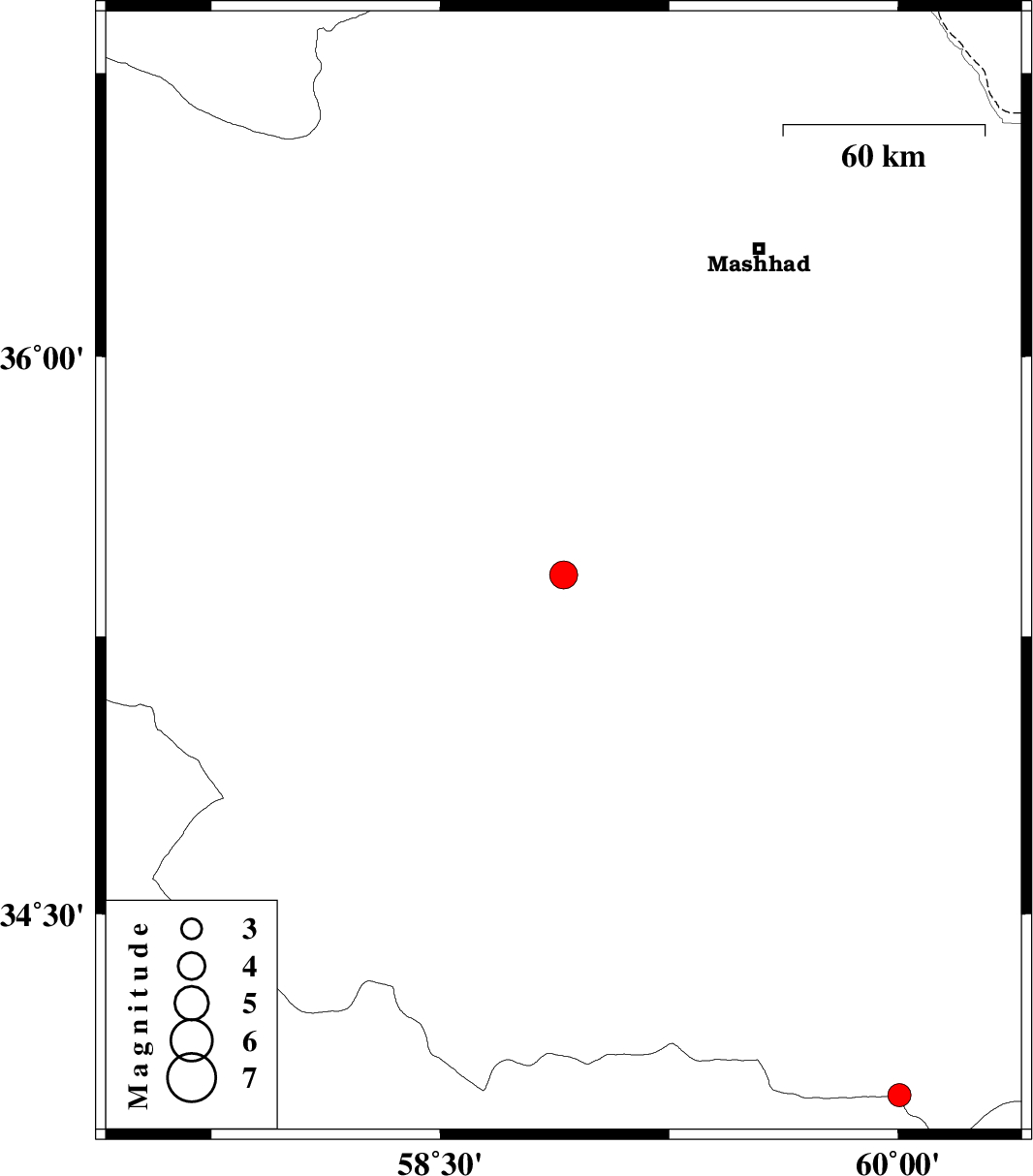 | 2024/11/08 | 04:19:11.1 | 07:49:11.1 | 35.415 | 58.904 | 12 | ML:4.1 | Khorasan(center) Province, 32 km North-West of Torbat-e heydariyeh | ||