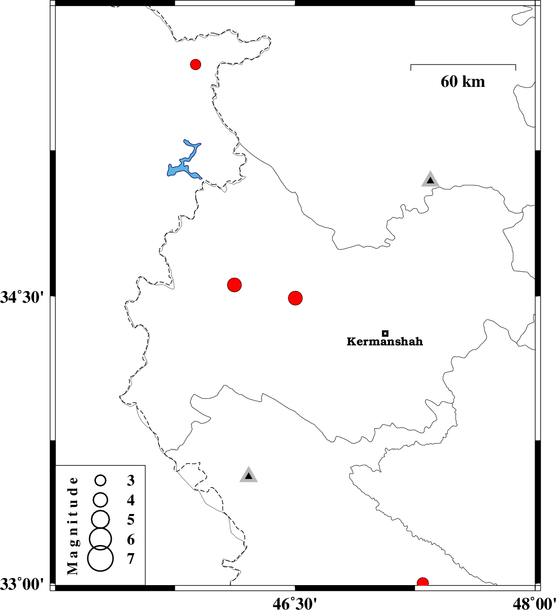 | 2024/10/18 | 01:10:25.7 | 04:40:25.7 | 34.557 | 46.121 | 15 | ML:3.9 | Kermanshah Province, 24 km -East of Sar-e pol-e zahab | ||