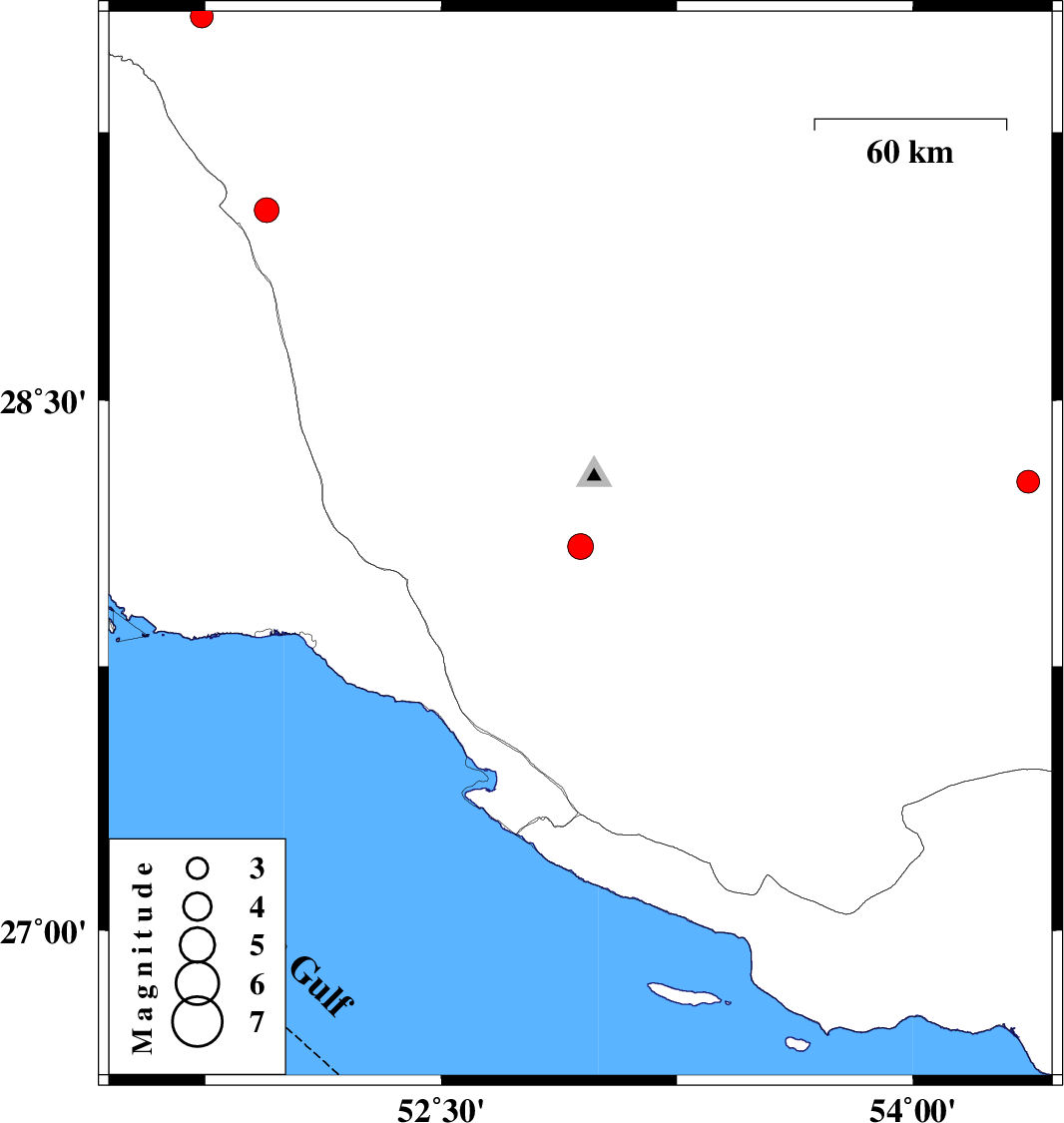 | 2024/11/12 | 05:04:55.1 | 08:34:55.1 | 28.271 | 54.367 | 12 | ML:3.2 | Fars Province, 66 km North of Lar | ||