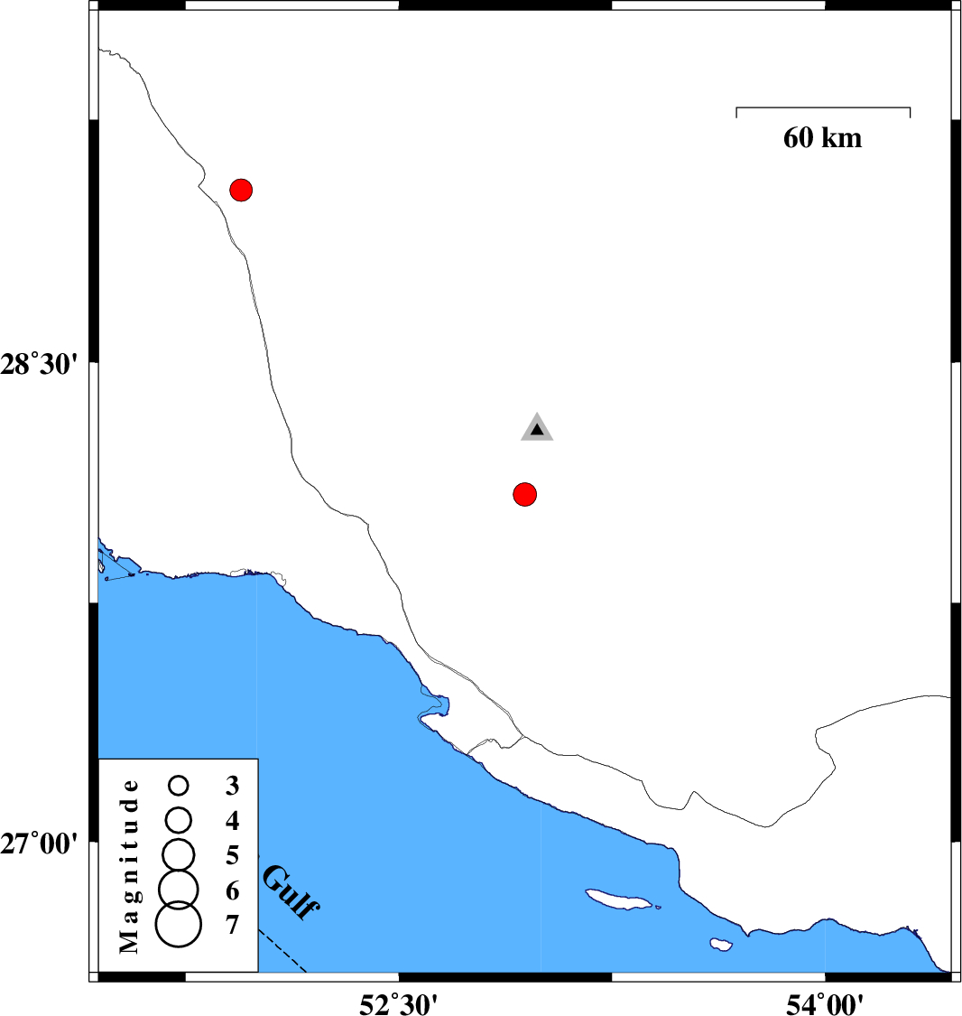 | 2024/11/26 | 19:59:32.1 | 23:29:32.1 | 28.088 | 52.943 | 23 | ML:3.6 | Fars Province, 43 km South of Qir va Karzin | ||