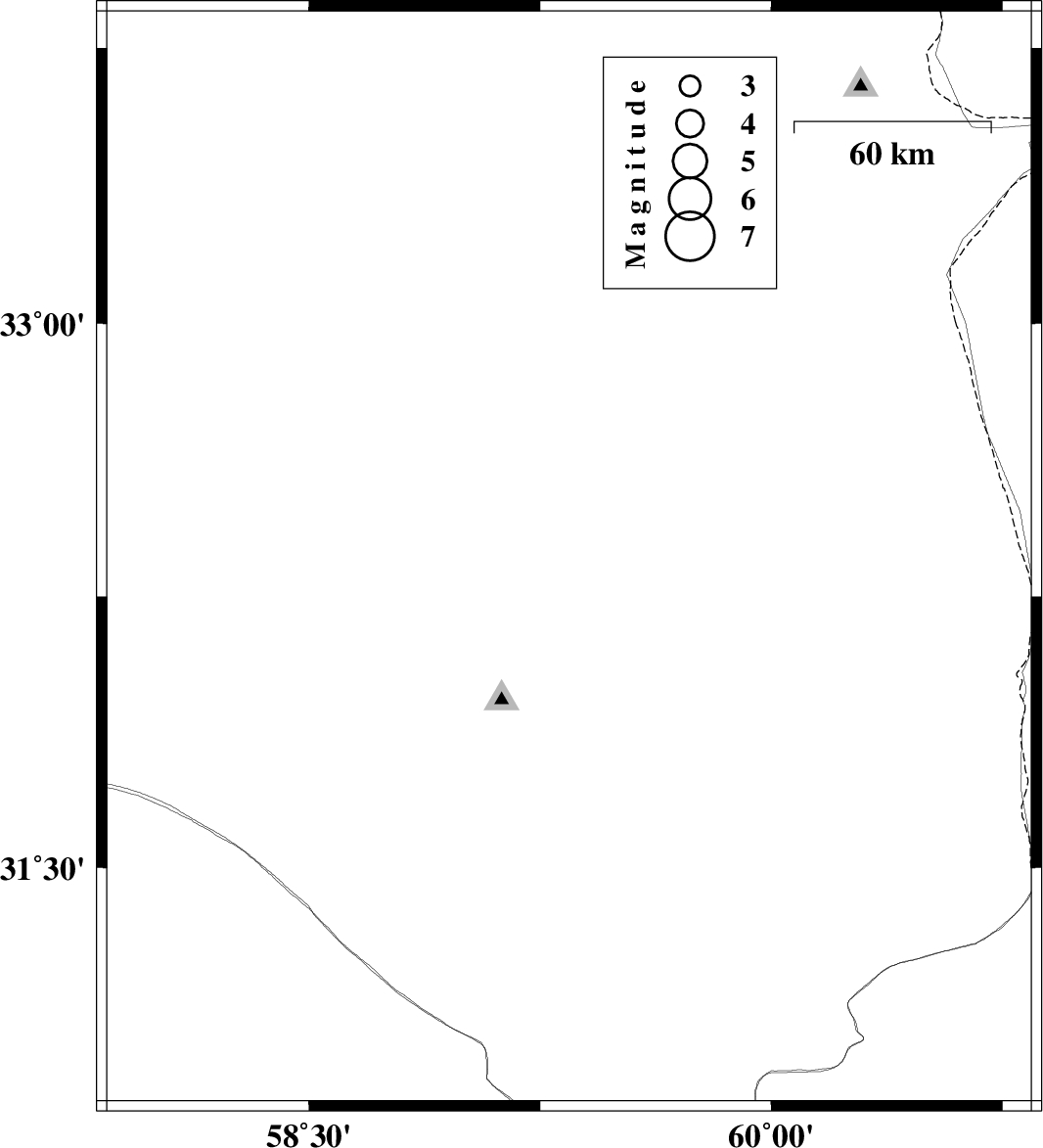 | 2024/11/28 | 03:56:37.9 | 07:26:37.9 | 32.35 | 59.344 | 10 | ML:3.7 | Khorasan(south) Province, 62 km South-East of Birjand |
