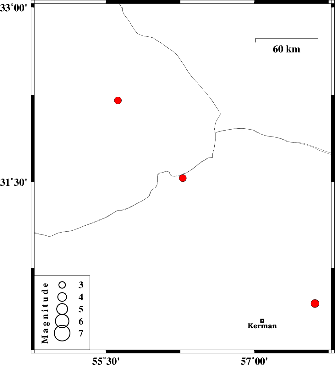 | 2024/11/30 | 19:01:53.8 | 22:31:53.8 | 30.439 | 57.611 | 12 | ML:3.7 | Kerman Province, 54 km North-East of Kerman | ||