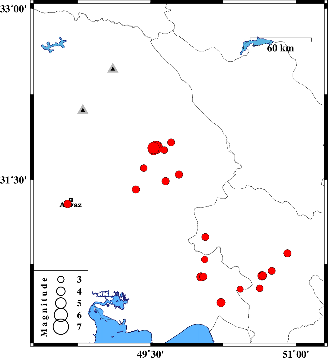 2024/11/08 04:01:46.4 07:31:46.4 30.79150.05910 ML:3.1 Khoozestan Province, 28 km North-West of Behbahan