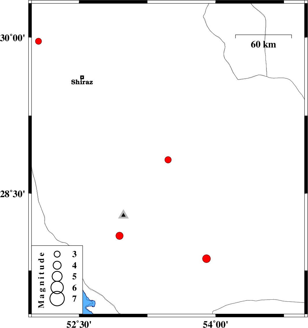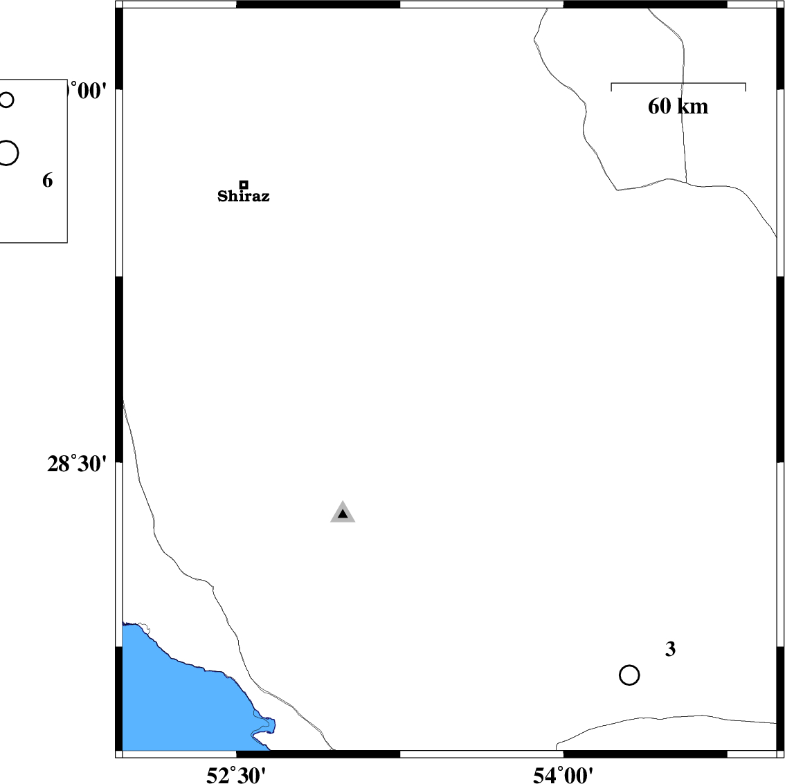 | 2024/11/28 | 05:43:10.5 | 09:13:10.5 | 27.865 | 53.9 | 12 | ML:3.9 | Fars Province, 48 km North-West of Lar | ||