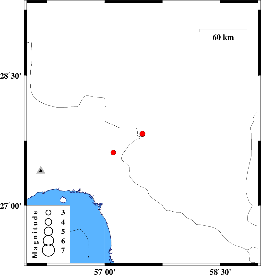 | 2024/12/18 | 23:07:56.2 | 02:37:56.2 | 27.828 | 57.489 | 12 | ML:3.2 | Kerman Province, 24 km South-West of Kahnuj | ||