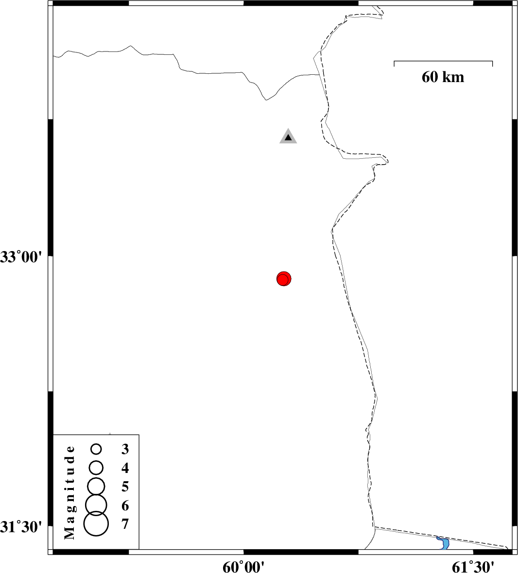 | 2024/12/20 | 23:31:40.2 | 03:01:40.2 | 32.874 | 60.262 | 12 | ML:4.3 | Khorasan(south) Province, 52 km North-East of Sarbisheh |