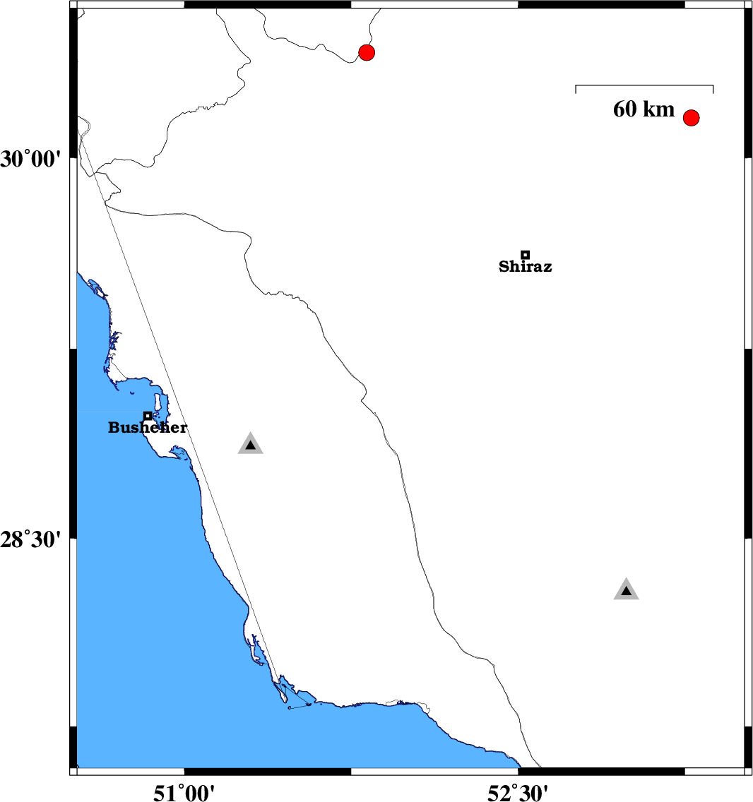 | 2024/12/21 | 04:51:48.9 | 08:21:48.9 | 29.084 | 52.018 | 12 | ML:3.2 | Fars Province, 25 km North of Farashband | ||