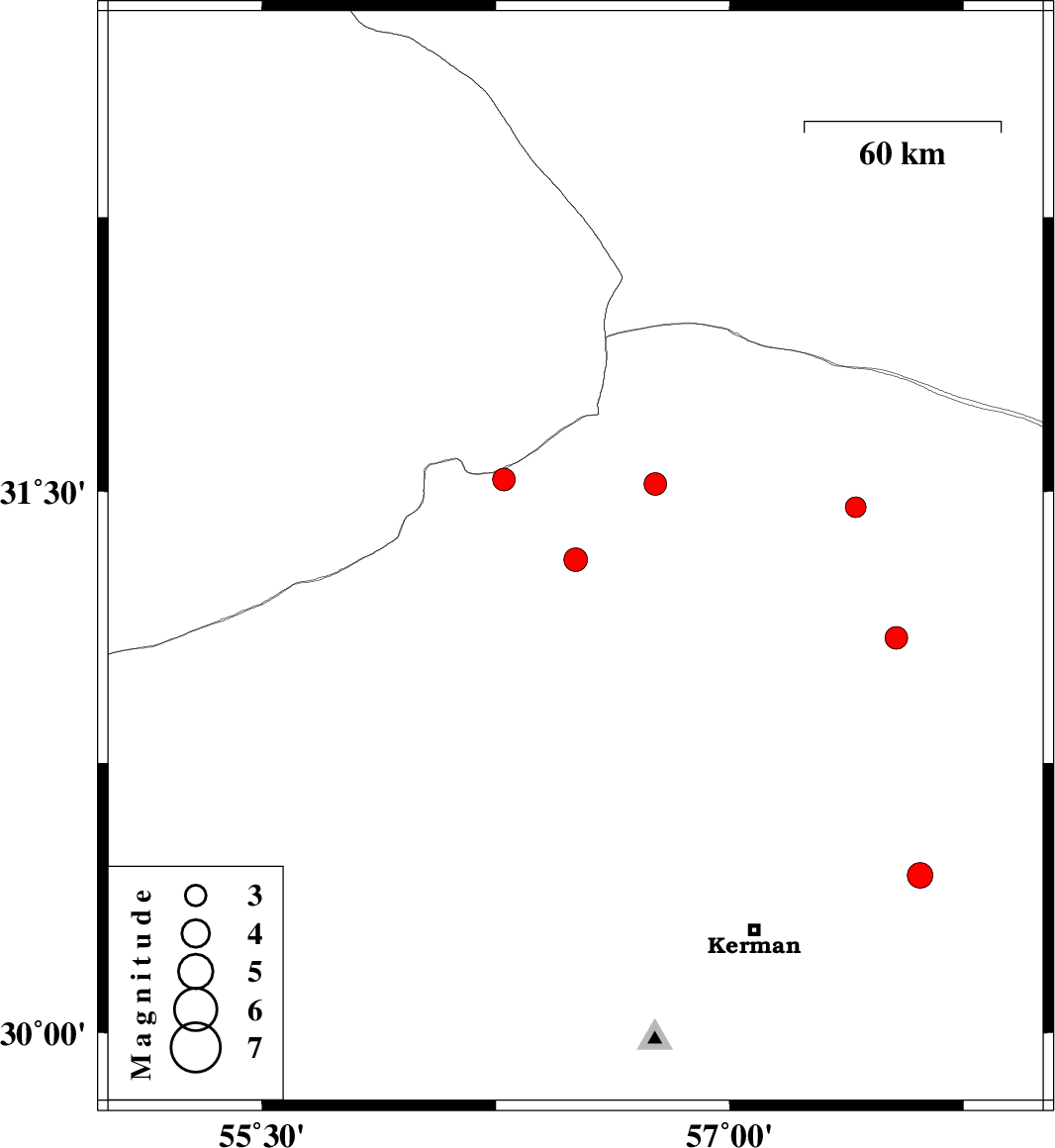 | 2024/12/26 | 08:33:20.3 | 12:03:20.3 | 31.456 | 57.405 | 10 | ML:3 | Kerman Province, 60 km North-East of Ravar | ||