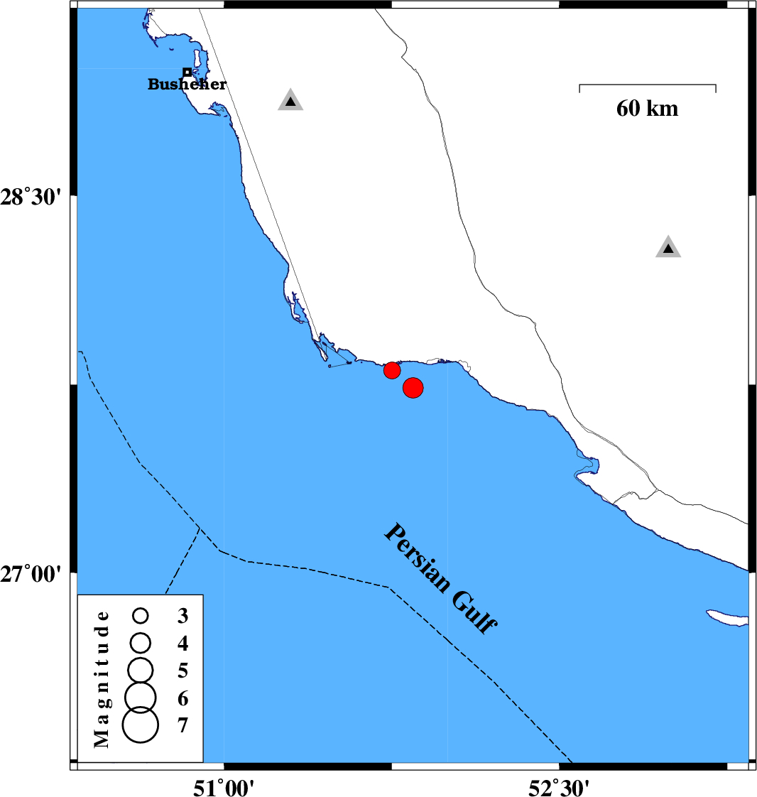 | 2025/01/04 | 21:42:37.2 | 01:12:37.2 | 27.737 | 51.845 | 37 | ML:4.1 | Persian Gulf, 23 km -West of Bandar-e kangan | ||