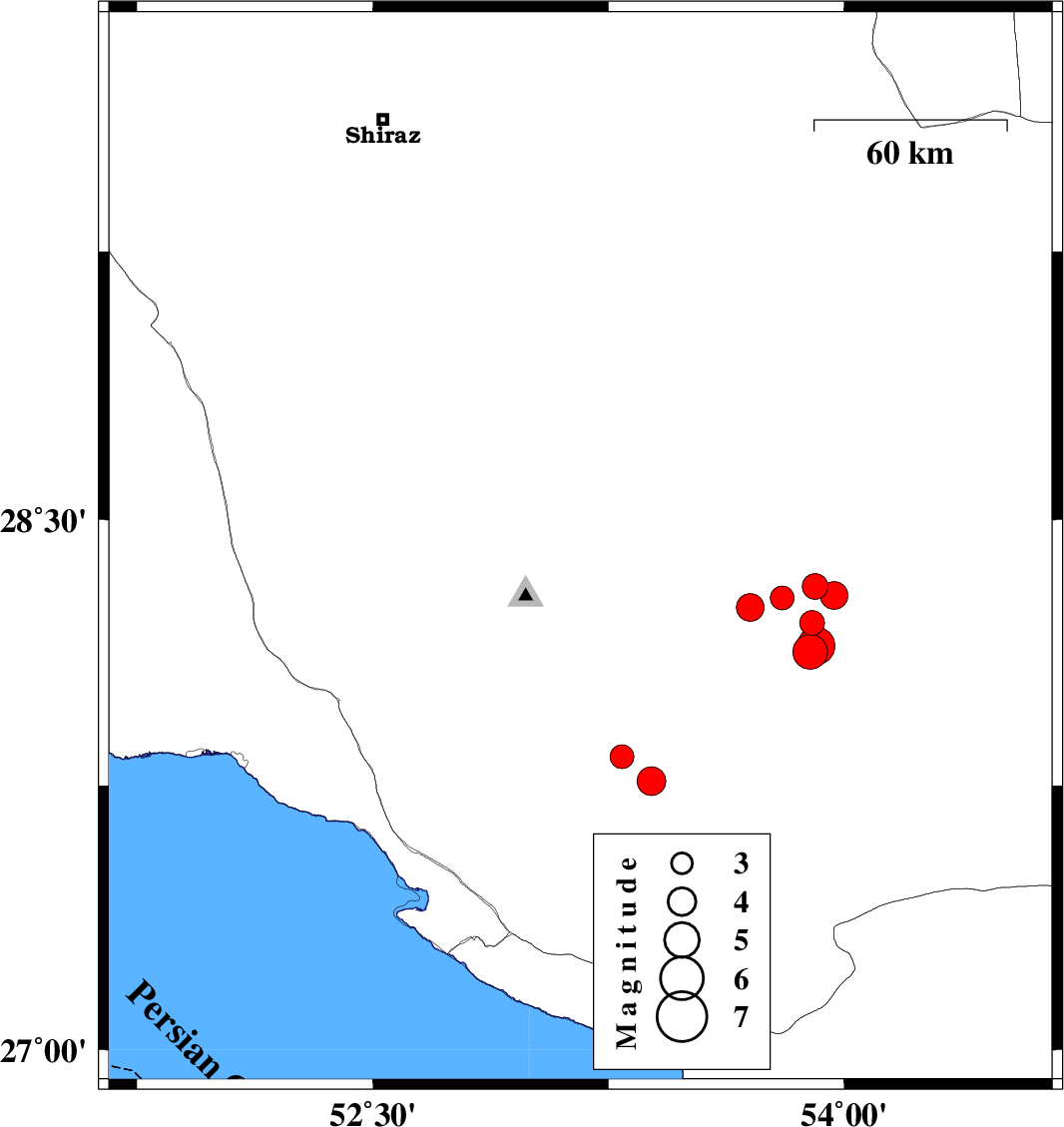 2025/01/06 19:58:23.6 23:28:23.6 28.28752.36712 ML:3.6 Fars Province, 51 km North of Jam