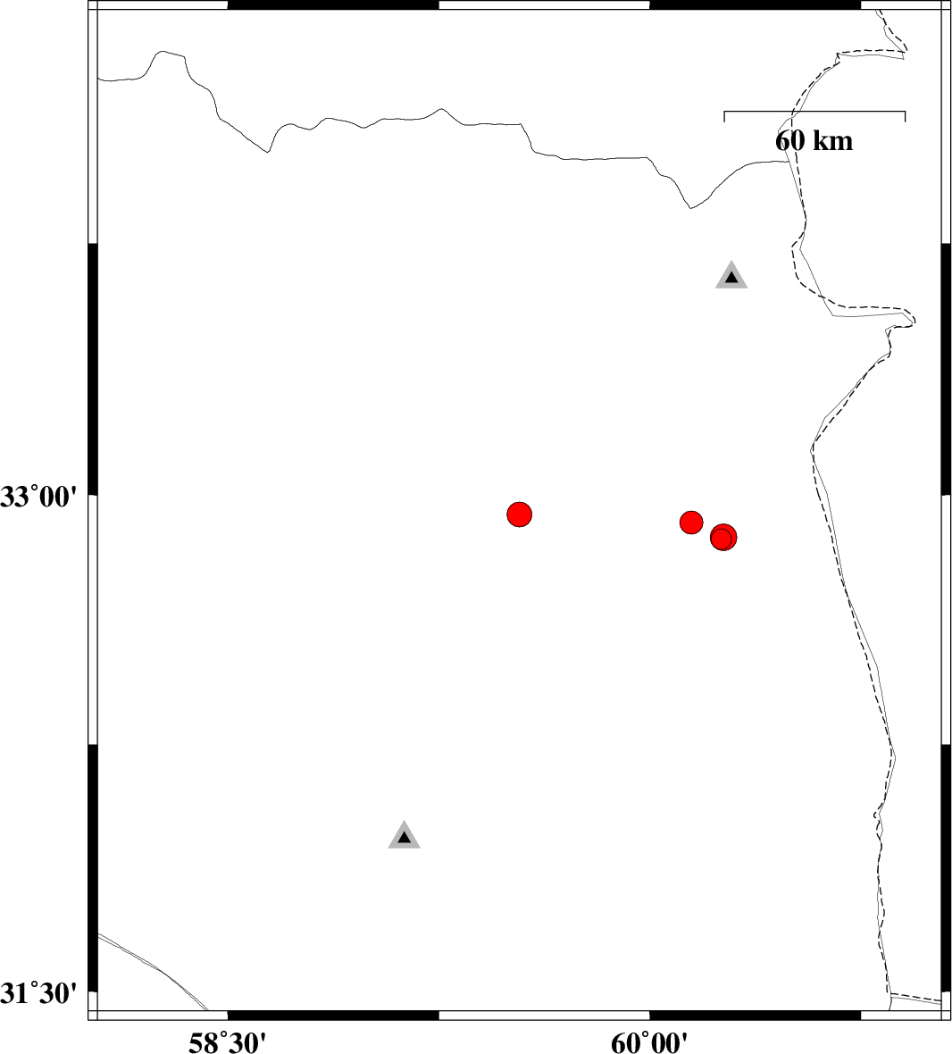 | 2024/12/21 | 02:59:40.6 | 06:29:40.6 | 32.868 | 60.254 | 12 | ML:3.2 | Khorasan(south) Province, 51 km North-East of Sarbisheh | ||