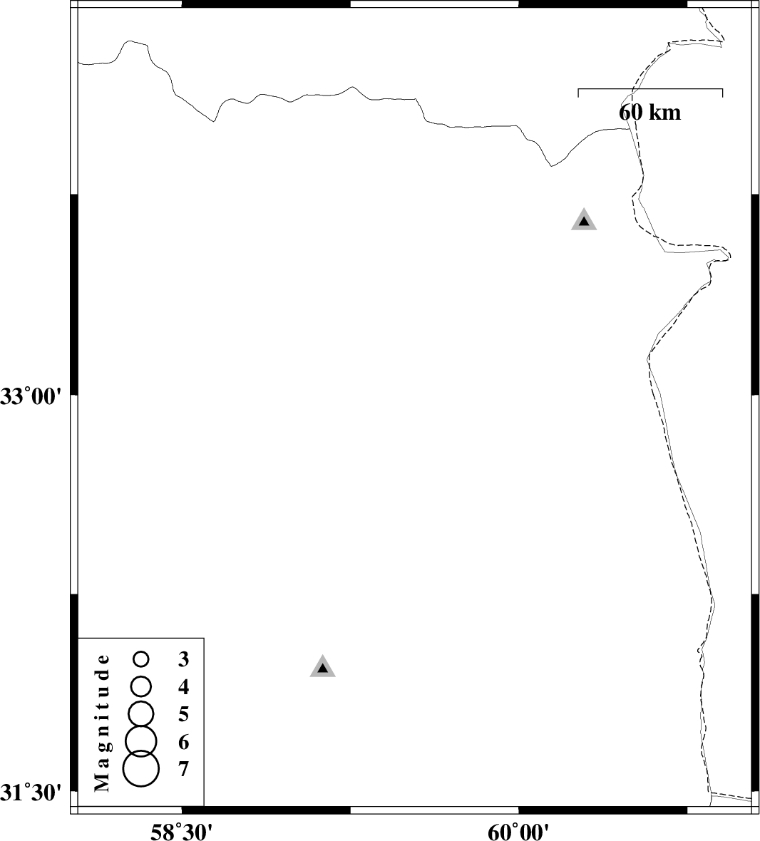 | 2025/01/07 | 03:10:06.5 | 06:40:06.5 | 32.942 | 59.536 | 10 | ML:3.9 | Khorasan(south) Province, 29 km -East of Birjand |