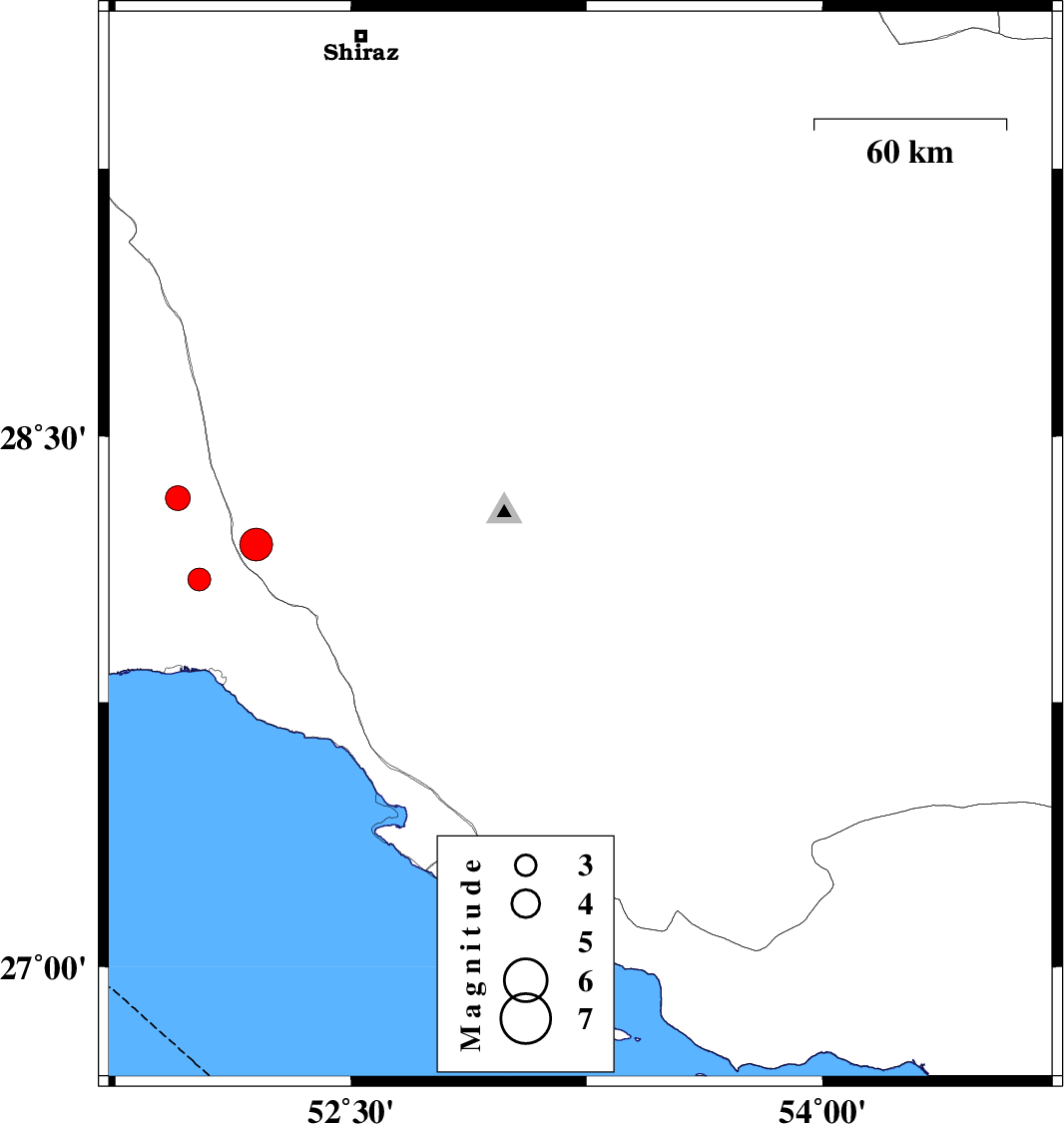 2025/01/06 19:58:23.6 23:28:23.6 28.28752.36712 ML:3.6 Fars Province, 51 km North of Jam