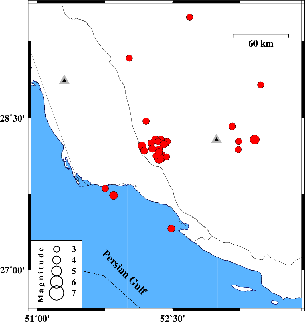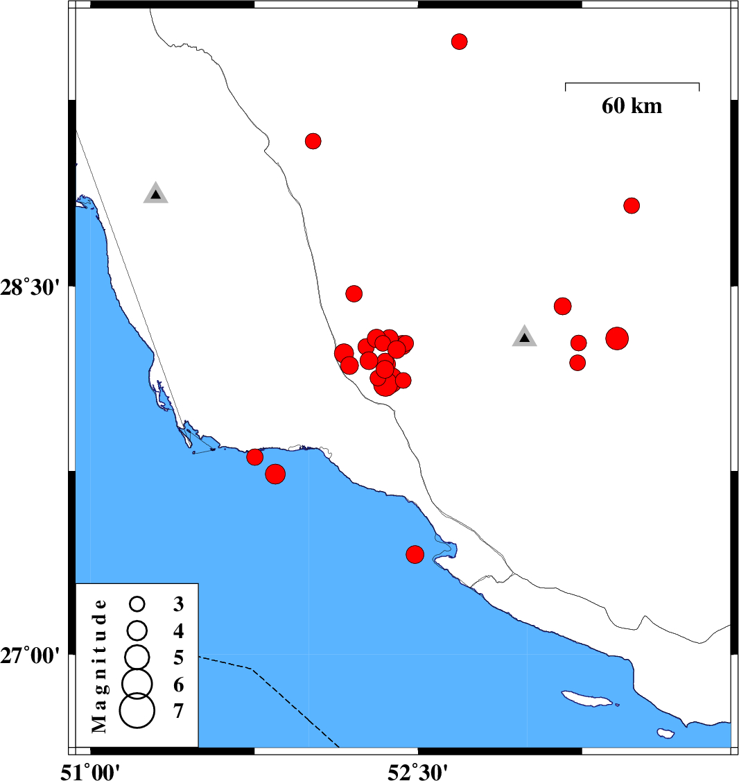 2025/01/07 13:08:29.8 16:38:29.8 28.17852.18512 ML:3.6 Fars Province, 41 km North-East of Bandar-e kangan